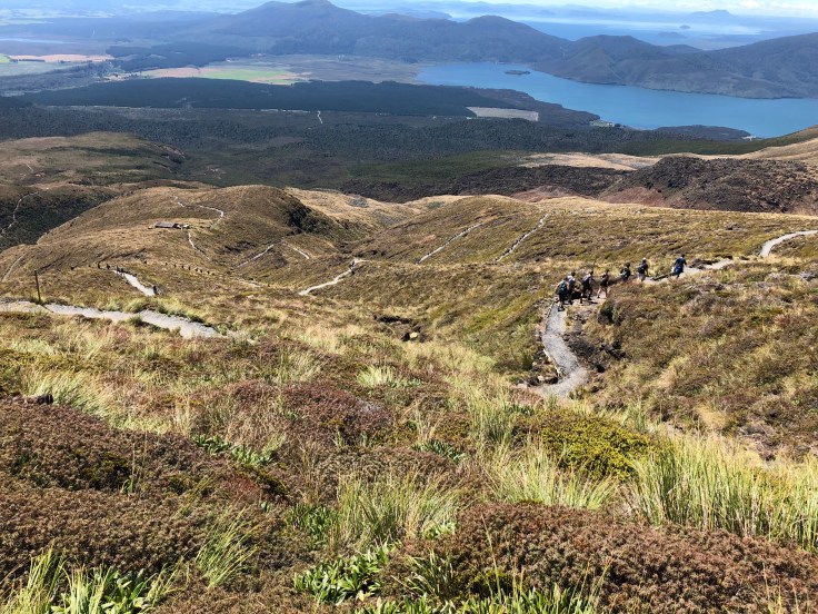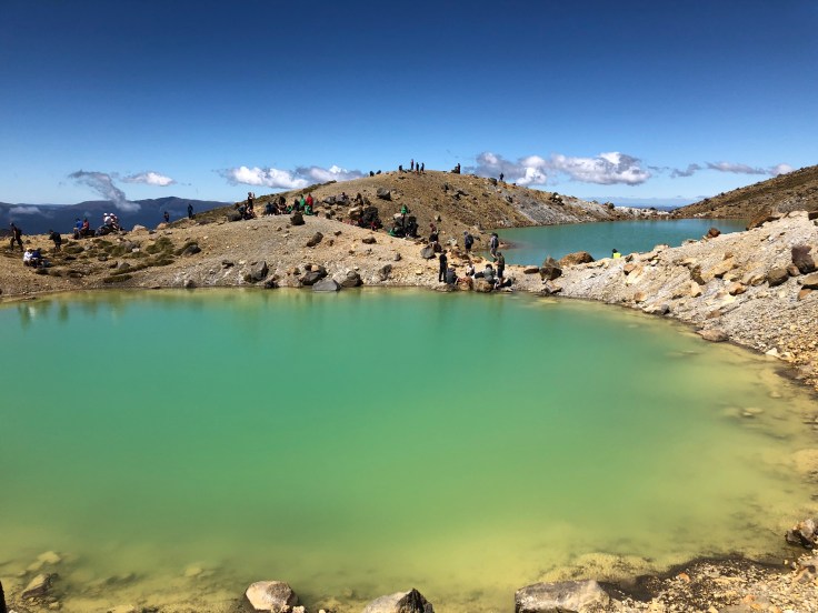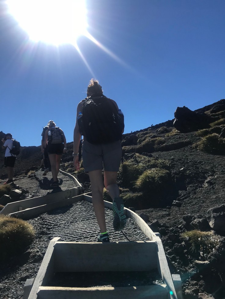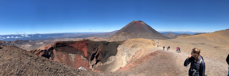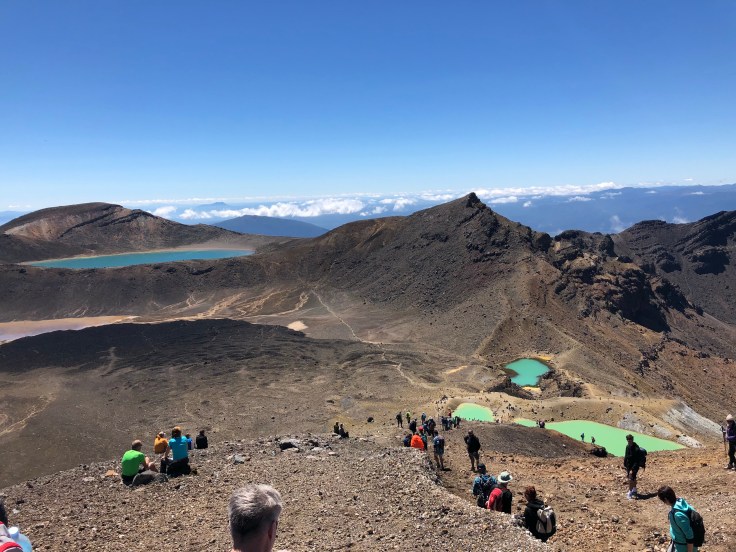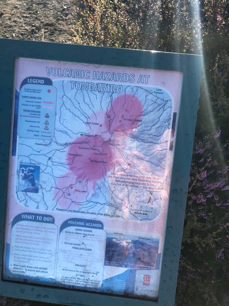 I am sun burned, I am wind burned, I am in pain, I am tired, my entire body is spent, and I wouldn’t have it any other way. Except for the sunburn, that part sucks. Today, I completed the Tongariro Alpine Crossing. I thought it was just a long hike with some elevation, I had no idea what I was getting myself into. I had no idea that today would turn out to be one of my greatest personal and physical accomplishments. I had no idea that this was a bucket list item for me until I stood in awe atop the summit of Mt Tongariro and stared eye-to-eye with Mt Ngauruhoe, both active volcanoes, with Tongariro erupting as recently as 2012 (twice that year). The elevation change of the crossing is approximately 3,900 ft. The crossing was one of the main features mentioned on the original road trip plan I used as my basic blueprint for this trip and intrigued me. I love to hike, how hard could it be?! I knew you had to be prepared for changes in weather (even in the summer you could experience all 4 seasons in one day doing the trek) and that it would take a while but I didn’t know much. I didn’t know that the trail map would have warning like “this section of track is steep and has a big drop on either side…when the winds are strong you may get pushed around… [may] even find you you need to be on your hands and knees.” I read none of this guide until AFTER the hike.