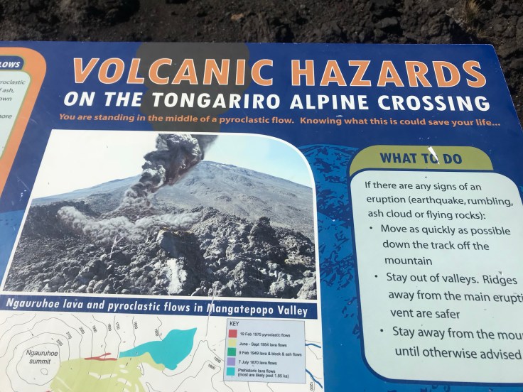 At one point on this final leg there was a sign I did not understand, “700m HIGHER RISK LAHAR HAZARD ZONE. Move quickly through. No stopping.” I was still walking along and chatting with some teachers we had met on the descent who were escorting a class on their outdoor education program, which included the crossing. They explained to me that a new part of the volcano had recently become active, was apt to erupt at any time, and when it did this area was the lava/mud path. As they put it, so at least you’ll know what killed you. Nice.