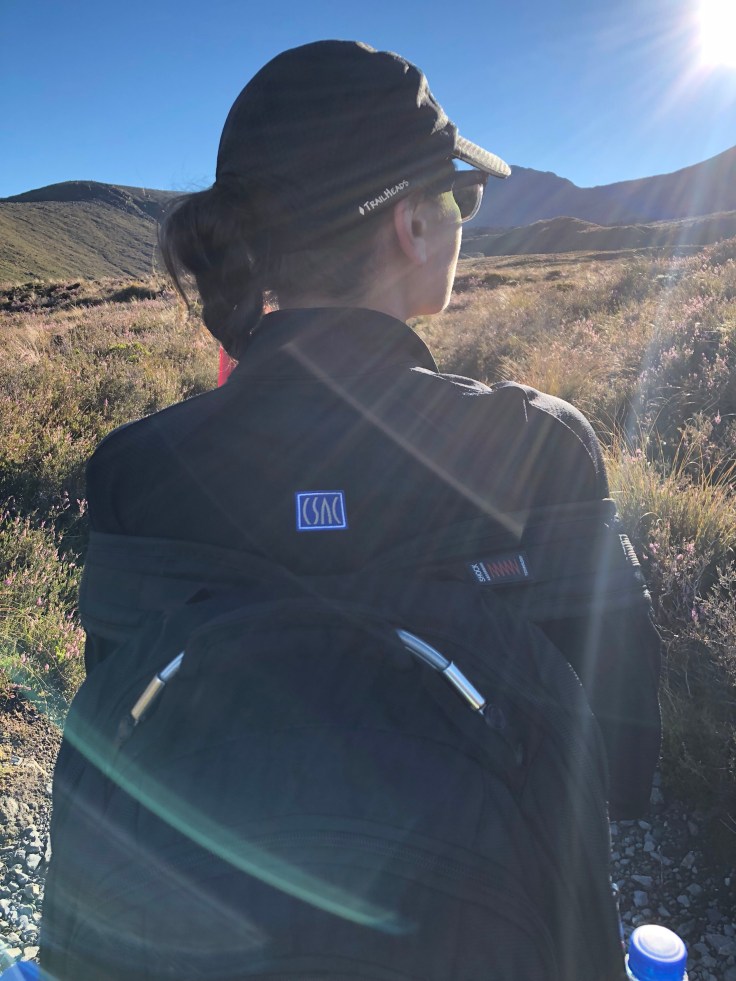 I got there at 6:30, heeding the warning to arrive early to find parking, and a sign indicated that the car park was already full, so I parked along the highway and took my time getting my shoes on and making sure my pack was assembled. This included realizing I had put my snazzy CSAC pull-over on inside out and rubbing away the deodorant so I could correct it.