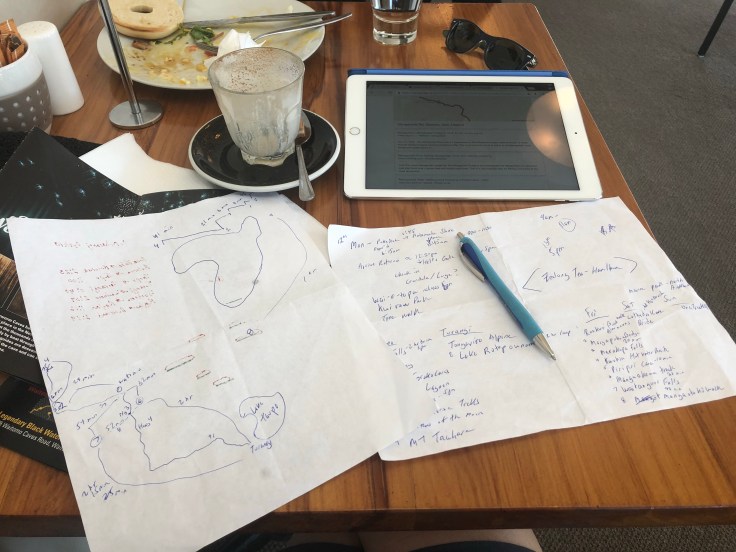 I got myself back to sleep after a while and gave myself the leisure of a slow start today. My AirBnB check-out time was 11am and I took every second I could of it. My AirBnB host, Doreen, was wonderful. I sent her a note in the morning asking if she had any brunch recommendations and if she could tell me where a pharmacy was as I was in desperate need of aloe gel for this damn burn. When I got out of the shower I had a message back from her already with a recommended spot and letting me know she had just left her favorite aloe relief spray outside the door to my unit (they live above the apartment). I still had no idea what my plans were for the day. I sprayed my pained body with aloe, packed up my rig and headed to get some food and figure it out. This was the first time this entire trip I’ve had a proper breakfast out instead of just a protein bar or nuts with fruit and/or juice. At the restaurant I pulled up an article I’d seen on free things to do in the Waitomo area. I used those two lone tired pieces of paper I have with me to put together a plan and I was off.
