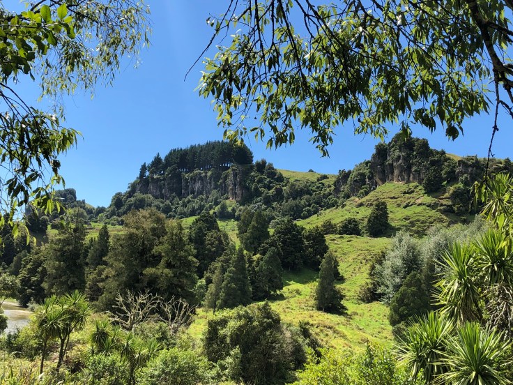 After a little over two hours driving, I arrived at the Mangaotaki walk. This brief trek would take me to the Waitanguru Falls. This was a short 30-minute track per the description. Perfect, I wasn’t doing anything longer than 30-40 minutes at a time today. My body is broken from yesterday. There were no other cars in the car park so it appeared I had this track to myself. Mangaotaki is a dense bush walk that includes views of more Hobbit scenes and sites. As I started this little hike I did not like it one bit. It was creepy in there. And there was no map at the start so the only guidance I had were arrows nailed to trees every few yards. When you are the only one in a dense area as such even a bird rustling in a tree sounds like Bigfoot is about to come running after you. I was anxious starting this walk but told myself to stop being a pussy and get on with it. I also realized that I am pretty much obsessed with the beauty of moss and other interlopers growing on trees. This was not a nice maintained track, tree roots stuck out all across and felled tree limbs and branches had to be maneuvered over and under. But sure enough, after about 12 minutes on the rough path I came across a clearing where you could see across to beautiful steep cliffs. I could hear the rush of the river but still wasn’t really hearing waterfalls, I continued on and before I knew it, I was back at the car park! What the heck? Where had I gone wrong? I was already uncomfortable with this hike to start and I somehow missed a wrong turn and missed the falls? Frustrated, confused, and hurting I pulled up the info back at the car (thank god I took screen shots since cell phone reception at most of my stops is spotty at best) and realized I had read it wrong. It apparently was billed as a good stop ON THE WAY to the falls. Sheesh.