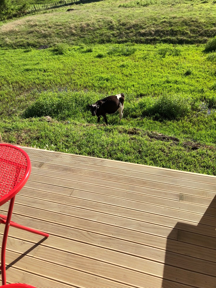 From there I had already planned that my next stop would be to check into my AirBnB. All my other AirBnB’s so far have been their own units either attached to a main house or beside it like in-laws quarters. My home for tonight was a farmstay, one I was able to book last minute last night. I’m not sure what I expected but sure enough, I am on a farm. But not like near the main farm house, I have no idea where that is, but in a separate small home “just past the wool shed.” My host had given me clear instructions to make sure I closed all gates I came through due to the livestock. I arrived at my farmstay skeptical, pulling up the road and parking at what was the back side of the house. The house is situated at the base of lovely green hills. I hopped out of my car and walked around to the front side of the house to check it out and, sure enough, there was a cow just off the deck munching away on the emerald green grasses. She looked up at me, and I just stated to laugh. This is the first time I’ve been greeted by a cow instead of the property owner! By now it was around 6pm and I knew my timing was tight since there were still 2-4 more spots I wanted to check out today. I named the cow Bella, dropped my stuff off, and jumped back in the car.