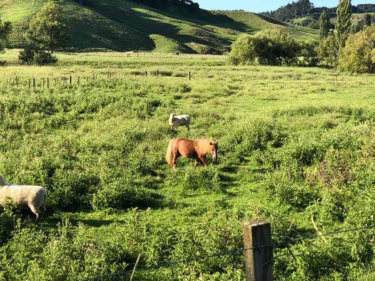 As I pulled away from my little farm, I noticed a pasture I had missed, too busy trying to follow the gate directions, when I got there. The green pasture looked lovely with sheep grazing and even a little pony! I had to stop for a picture. I threw my car in park, hopped out, and made some clicking noises with my tongue to see if I get the attention of my little friends for a good picture. The sheep were not very interested, the pony, however, was all in! She looked at me interested, and before I knew it, she decided to come give me a proper greeting. Apparently this little pony is Maori because she insisted on a nose-to-nose welcome (the traditional Maori greeting is to grasp each other’s right hands, put your left on each other’s shoulders, then gently press your noses together twice with slight breaths and saying “kia ora” in unison). Kia ora my little pony!