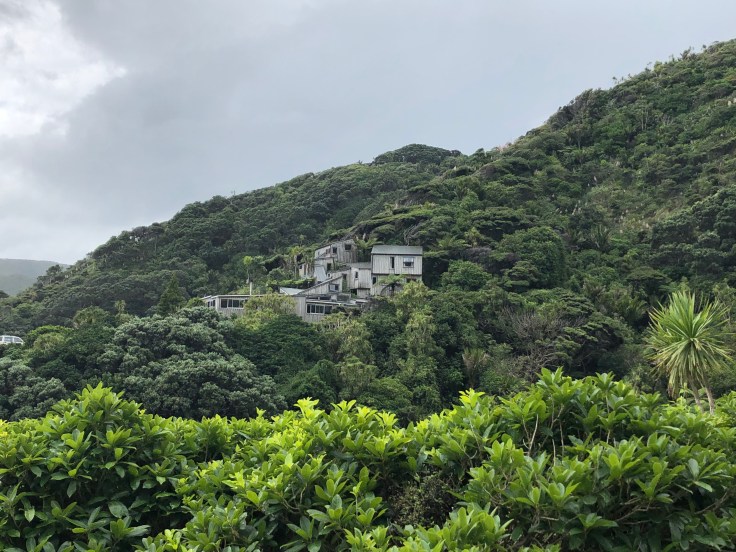 From there I was off to the Karekare Falls; a mere 15ish minutes up the road. The vast majority of those 15 minutes was spent on the last 1.5 miles down to the falls. The road was the scariest I had driven in New Zealand. Super windy, super narrow (maybe 1 1/2 lanes wind), and blind turns every 20m or so. Horrible. But I made it. Thankfully the falls were only about a 5 minute walk from the car park. There was a gorgeous wooden home on the hillside overlooking the falls. I was taken by it and oh so jealous of whomever was lucky enough to live there.