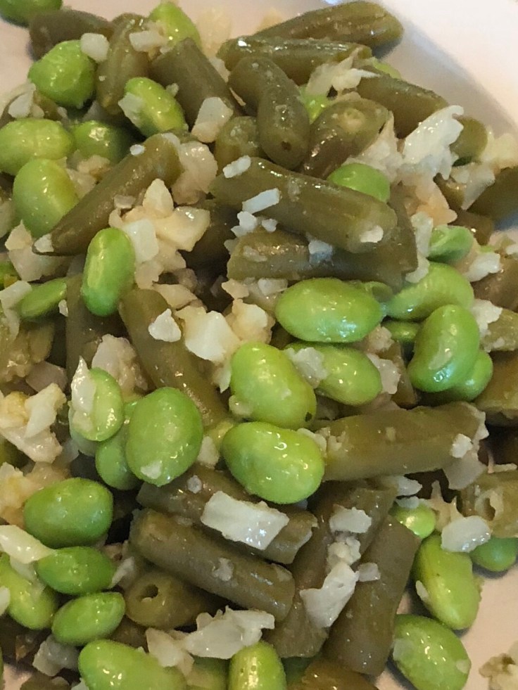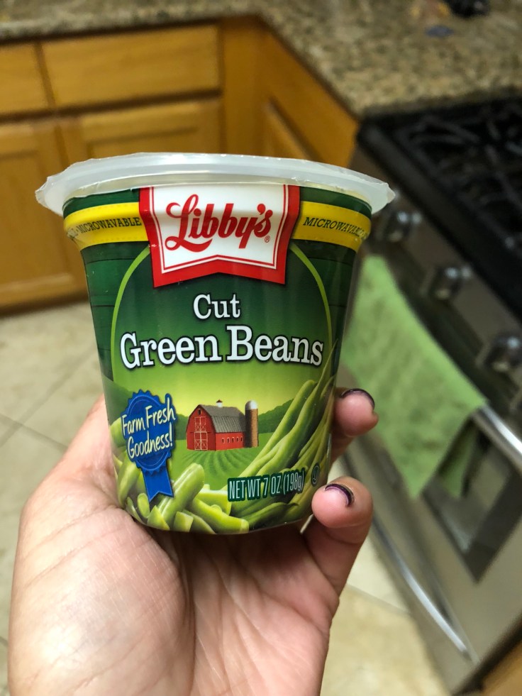 But back to cooking, it can be so easy to cook a delicious, quick, easy, healthy meal at home by not over-complicating things. If I were better on the grill it would be even easier but I still can’t figure that out so I use my oven a lot – nothing easier than throwing a protein on the bottom rack and a tray of veggies on the middle rack. It is easy to adjust veggie-roasting times to match whatever temperature is needed for the protein. It is also perfectly ok to take shortcuts. No matter how hard I want to eat all fresh organic that is not always easy and I have to remind myself to not feel too guilty or beat myself up over it. For example, I love the Libby’s single-serving vegetables! Specifically the green beans! Green beans are the only vegetable that I actually prefer the taste and texture of in a “canned” form. Also for grains, I like to use shortcuts, the Seeds of Change Quinoa and Brown Rice is an absolute staple in my house (and you can usually get it at Costco for a great deal). I also keep my freezer stocked with riced cauliflower (though I must use sparingly or I will bloat bloat bloat) and shelled edamame.