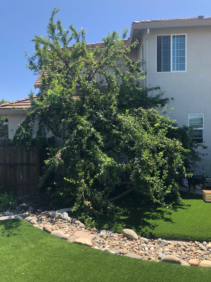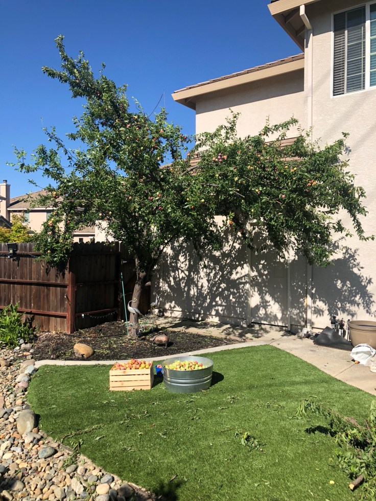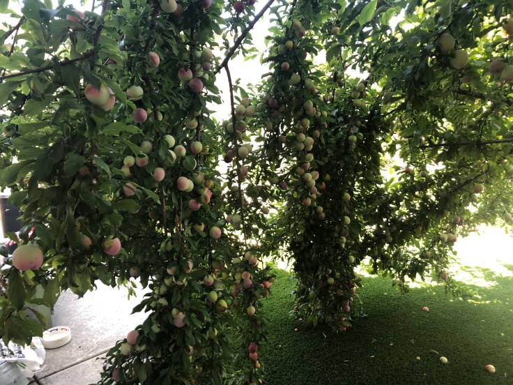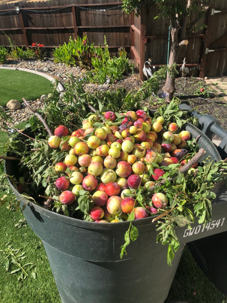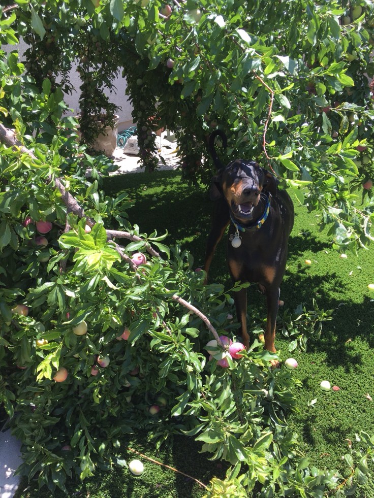 It all started with a text from my pet sitter – well, the wheels were put into motion before I guess – as I was heading home from my business trip of the week letting me know that “one of the big branches split and fell” on my plum tree. She promised to send pictures a little later. This did not seem like a huge surprise to me. The tree was a little overgrown, I had meant to trim it back before the season started but never got around to it, and Mr. Zeus loves to tug unripe plums off of the tree himself to play with.
