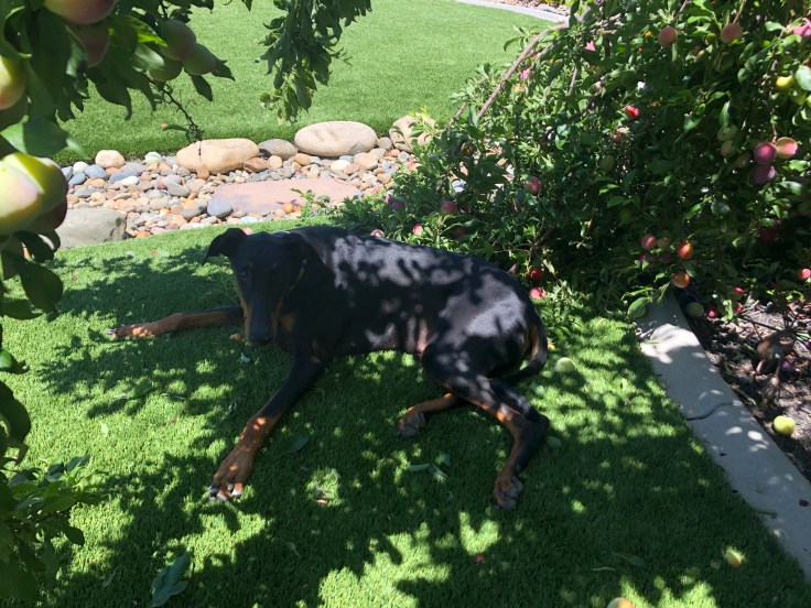 This game of picking and trimming of the small branches felt like it was going on and on and on. I cannot even fathom how many hard unripe plums came flying off the tree and pummeled me during this process. I may have underestimated the size of this damn tree. It was also started to get sunnier and warmer. Nice. Whereas both dogs had started out keeping me company, Lizzy was now my lone supporter, moving every few minutes to stay in the shade now and out of the way of flying plums. Zeus had gotten bored enough that he finally figured out how to open the screen door himself (Lizzy and their cat both already know how) and had let himself back in to curl up for a nap on the couch. I don’t blame him, by the time I realized he had gone back inside it was already 1:00pm. I thought I would be down with this entire project by that time!