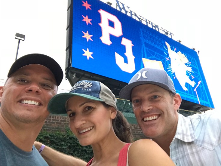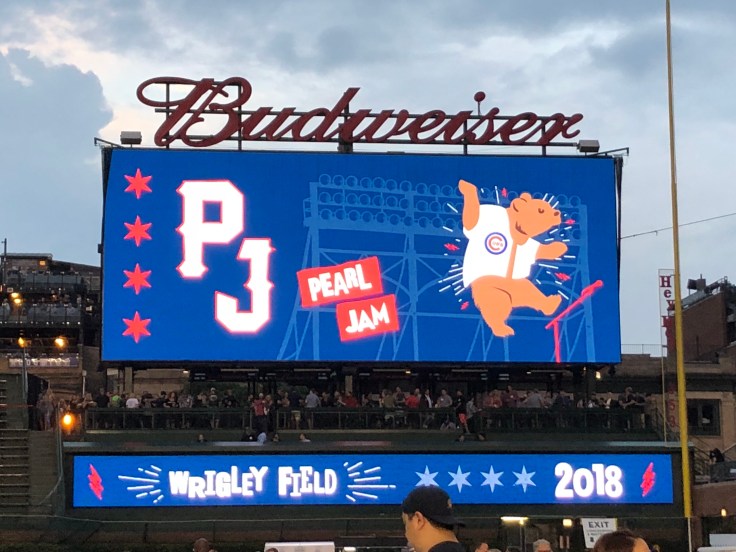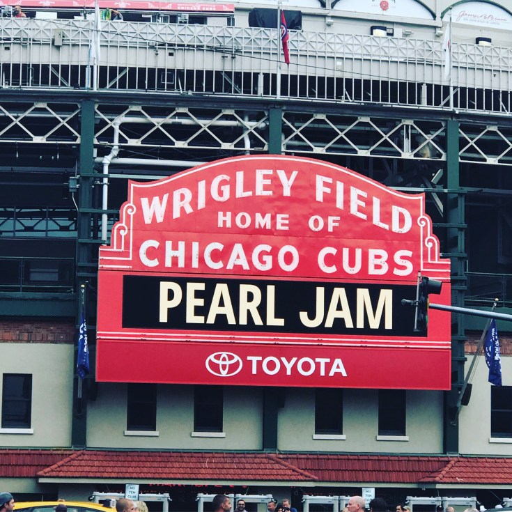 Waiting for them at Murphys an hour later I met some interesting creatures. One guy had seen Pearl Jam 17 times and always just waited until the last moment to get a ticket. Sure as shit, as the camera panned the crowd later that night I spotted him on the big screen, front row in the pit. My new friends arrived and we spent a couple hours enjoying a couple cocktails, talking music, talking about morbid tv shows, talking about life, and talking about how the hell I could sneak my way into the pit. It’s really really refreshing as a women to meet a couple dudes that are just cool and friendly and not at all creepy or trying to hit on me. We got to Wrigley, had another drink, and parted ways as they headed to the pit and I to the field.