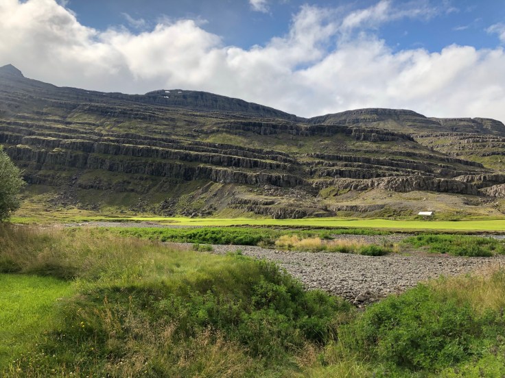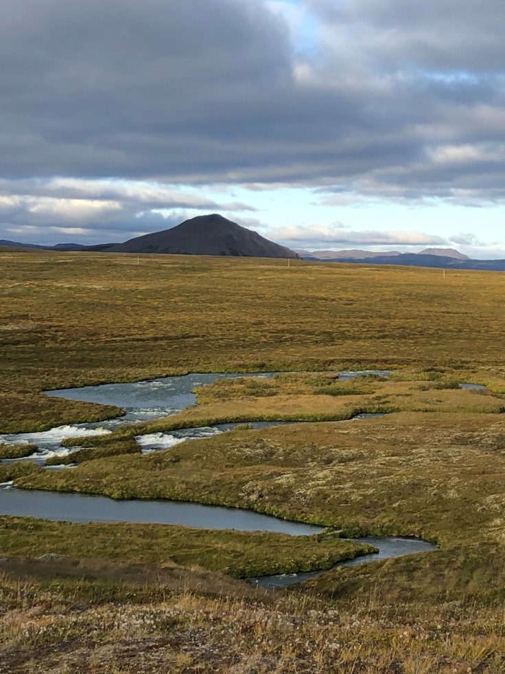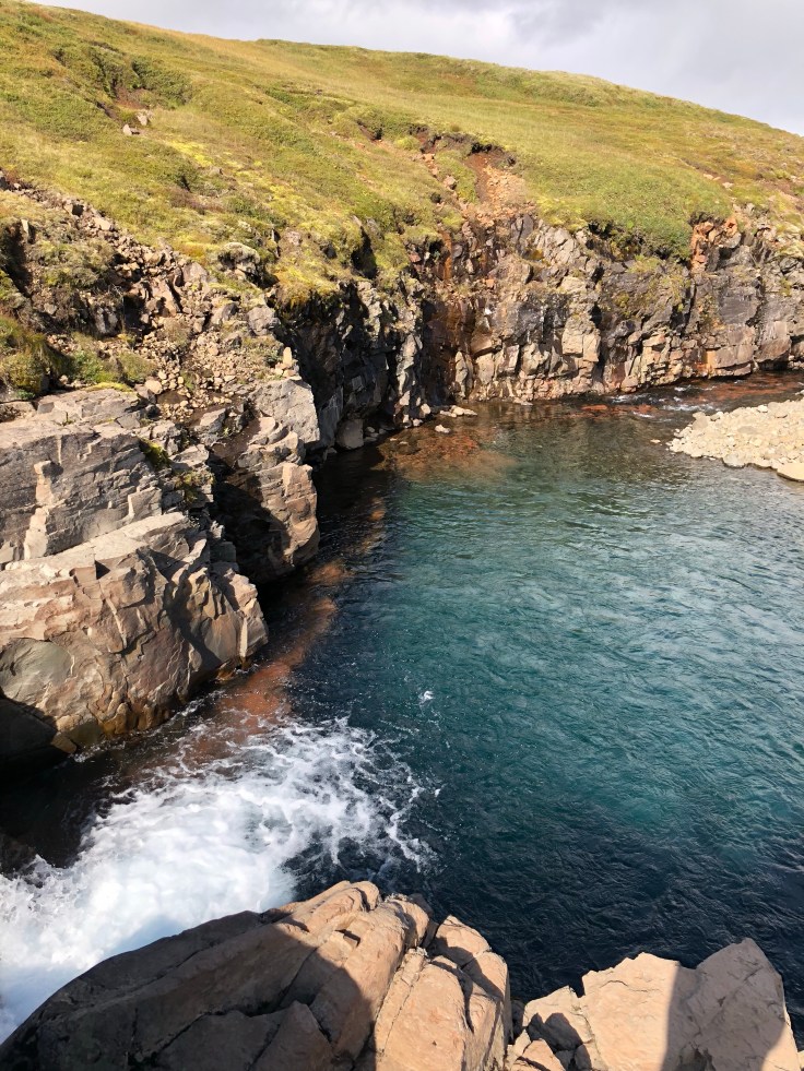 I peeled myself away from Hverfjall and continued on my last 1 1/2 hours to Akureyri where I am staying tonight. Per usual, breathtaking scenes along the way. At one point there was a beautiful rushing river with little grassy islands. Set amongst a lush grassy area with the stark mountains/volcanoes in the background it was quite a site. I found a spot to pull over but there was a little fence stopping me from getting closer. Hmm. Are fences in Iceland electric? In a little area it was bent down a bit and I decided to make my chance. I was very thankful for my long legs as I was able to get on my tippy toes and step completely over the fence. But there was a moment as I was straddling the fence line where I had a flicker of anxiety, was I about to get a thrill? Thankfully I made it over and back just fine. I did end up poking the fence to see, no electricity. I’m guessing they don’t actually have many, or any, of those here but this California girl doesn’t know!
