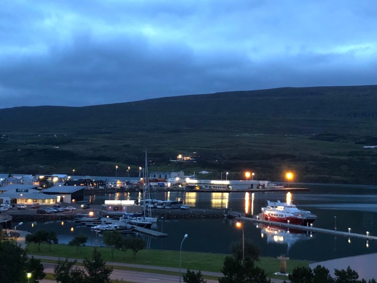 I finally arrived in Akureyri to find my AirbBnB. Which turned out to be a challenge. There is a festival (the birthday of the town or something like that) this weekend and the street my apartment is on is blocked off. I parked a block over and walked over to check it out. And the lockbox was stuck. Like stuck. Like was not going to open. Ugh. Thankfully I had the host’s cell number and was able to get a hold of him right away! He was out of town and sending someone over to help me. It was frigid out and I took shelter in a store across the street, waiting, and eating a fruit bar since I was getting hangry. When the lady finally arrived and I was able to get inside my frustration quickly subsided. The place is adorable, modern, clean, perfect. But it’s also on the 4th floor of a building with no elevator. Thankfully I pack efficiently so I was able to pull just what I needed for the night out of my bags instead of haul everything up. Tomorrow is another long day; a flight to an island in the arctic circle in the morning (and back), whale watching and sea angling in the afternoon, and then a 2 hour drive to my next destination.