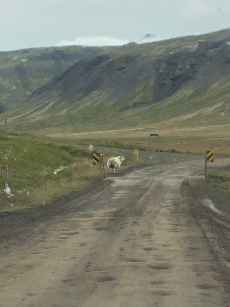 I got it all out, pulled myself together, and realized the landscape was starting to get interesting again. I pulled over for the first time during my drive and damn it was cold. A strong, gusty, ice cold wind was relentless. I could barely pull the car door closed again. The further I made my way down the Snaefellsnes Peninsula, the more intriguing the landscape began. I had not yet seen the sun yet today, and it never did come out. While it made for gray skies I was happy to not have it blinding me while I drove along. Some more sheep tried to play chicken with the car and I laughed as I watched one run across the road -it’s giant fluffy butt wiggling back and forth made me think of my friend Karen’s obsession with little corgi butts running! (Karen – if you’re reading this – I totally made the little corgi butt signal with one hand while I drove along.) The sheep are always in groups of three. Do you know why? I do now, sheep usually have two offspring each year so it’s the ewe and her lambs always together. I just realized that doesn’t explain where the rams are… hmm. More to figure out.
