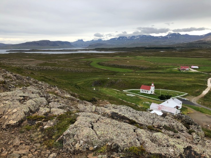 A teeny bit back inland, I found myself at the Holy Mt Helgafell. It is believed to be a sacred place. There was once a monastery at its base and a prayer chapel at its peak. There is much lore around this spot, you can read it here, no need for me to repeat it all. BUT, as legend has it, you are supposed to hike up the hill to the prayer chapel ruins, without looking behind you or speaking at all on the way up, and then you make three wishes that should come true. There are two ways up the hill, one obvious one and then there is supposed to be a track up the hill from someone’s grave behind the little church that sits at the bottom of the hill. Starting from the grave is supposed to be the proper way. To get onto the hill, you actually have to cross a swath of a farmer’s private property. And that enterprising farmer sets up shop and charges you to walk by, he even takes credit card. I paid the farmer to cross his land and asked if I could walk across his property to start from the church instead of starting from the more obvious western entrance he directed you to. I think we had a bit of a language barrier but he repeated the word church and nodded so I went with it. I headed off down to the church to take the “proper” way up. Well, I tried to. I coudn’t find any obvious trail or simple way up the little mountain. It’s the thought that counts right? I headed back up to the west side and made my way up. It is really hard not to stop and look behind you when legend says you aren’t supposed to. I found the ruins of the prayer chapel at the top, walked inside them, made my three wishes, admired the views, and headed back down.
