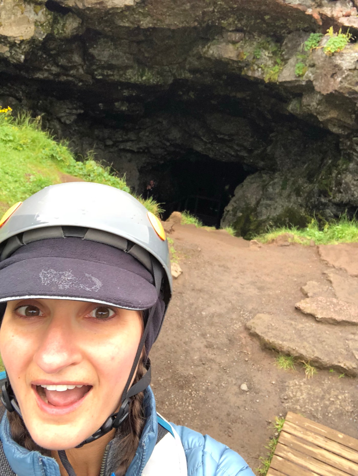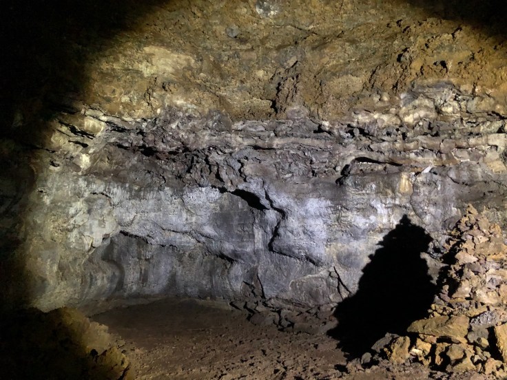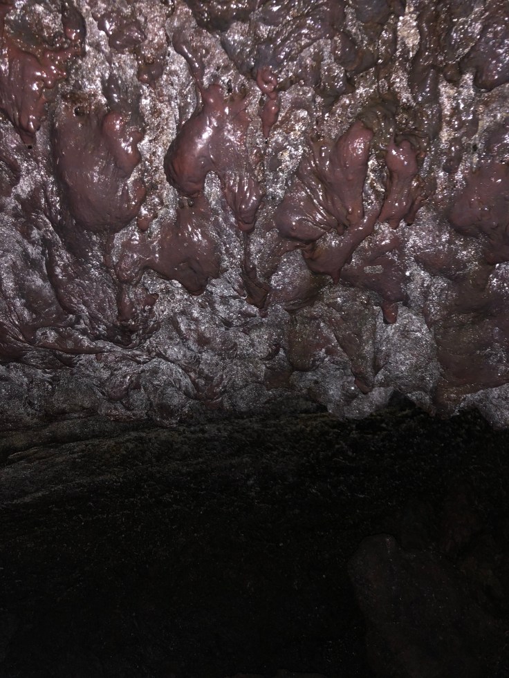 Being inside the cave was awesome. Seeing the shark-tooth looking stalactites piercing through the walls where the lava suddenly cooled and froze in time was fascinating. Unlike in a regular cave where the stalagmites and stalactites continue to grow, in here there is no growth. They remain exactly as they where when the lava tube was formed, 8,000 years ago, by rushing streams of lava cooling. Due to the porous nature of lava, there is no echo in this cave. None. It is freezing cold in that cave, literally between zero and one Celsius. No wind makes it in and the air is still but the temperature was frigid nonetheless There are no lights in the lava cave. The guide hands you a helmet and small flashlight as you head down and that’s it. At one point in the lowest chamber the guide instructed everyone to turn off their lights and remain quiet for a moment. The silent complete darkness was like nothing I have ever experienced before. The cave sung a beautiful melody of drips of water into puddles and rocks, with no echo, and nothing else. And the darkness, your eyes can never adjust to the dark in there because it is so complete. You can hold your hand an inch away from your face forever and your eyes will never adjust to see it. Crazy. I loved that moment.