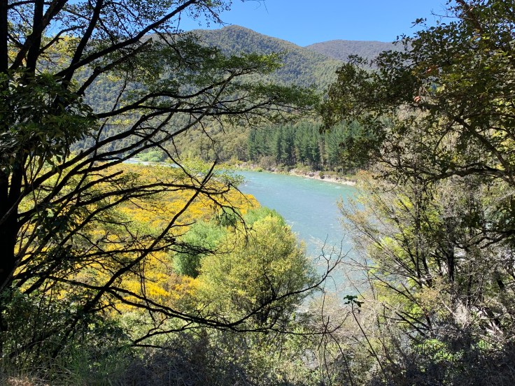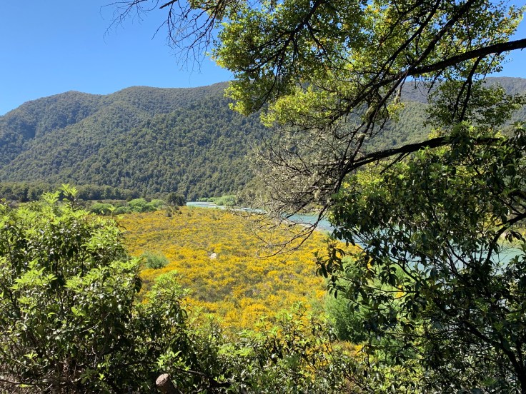 After gassing up I popped open one of the bottles of Bundaberg holiday spice ginger beer I had picked up the day before (never fear, this is just ginger “beer” – not like an alcoholic beer) and holy smokes it was amazing! I already love ginger beer but add in some cloves and cinnamon and it took it to a whole new level! I hope they are selling it in the U.S. I sipped my ginger beer and enjoyed the scenic views around me. The drive was absolutely gorgeous, and while windy, was not nearly as curvaceous as I feared. The first roughly three hours of the drive took me through gorgeous national parks winding along the Motueka River. The peaks and valleys were lush and green. An abundant yellow flowering bush accented the hillsides throughout. Also throughout were multiple single lane bridges where one must make sure you aren’t paying chicken with oncoming cars. Those are always fun. This interior highway would pop me out on the coast and become the scenic coast highway.