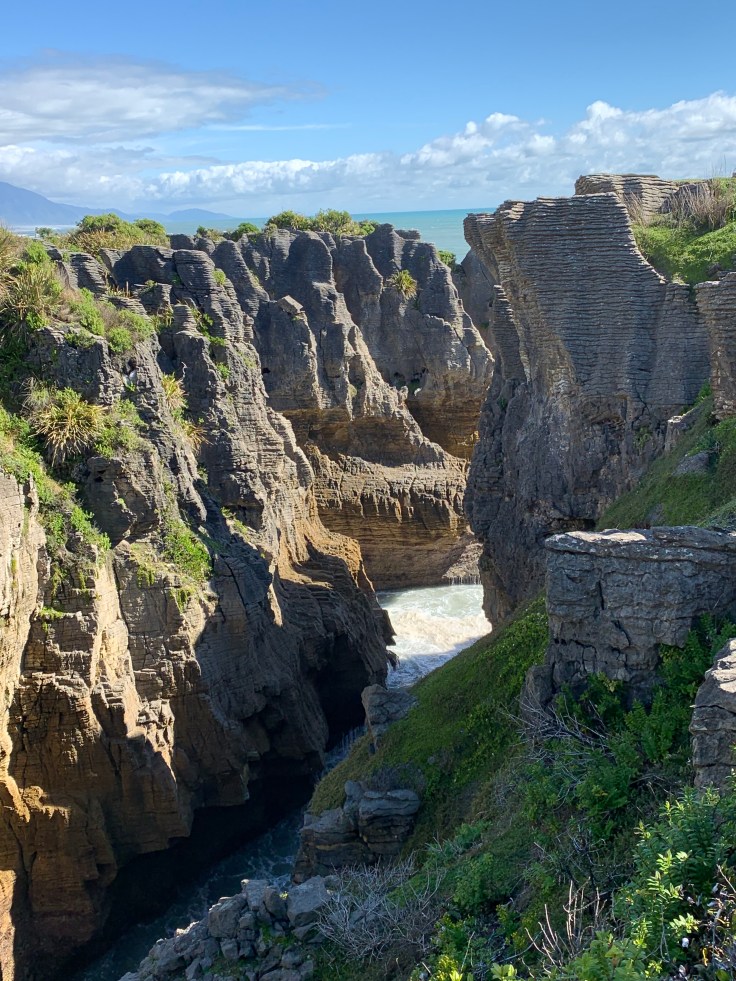 A few minutes down the road I arrived at Dolomite Point to see the famed Punakaiki pancake rocks and blowholes. These exquisite rock formations are layers of limestone and it is still a mystery to science how they came to be formed in layers. The 20ish minute track amongst the rocks was pretty heavily occupied but it was still beautiful regardless. Nature is awesome. I stopped for a few minutes and watched the waves crash in and explode between crevices in the formations.