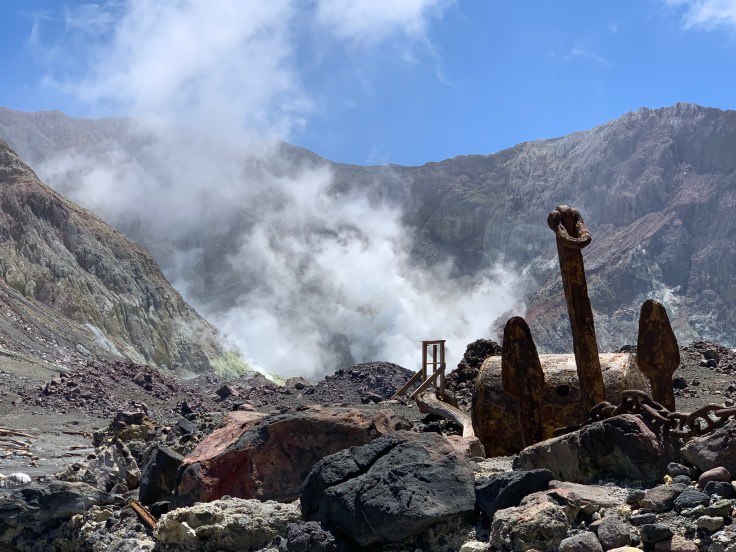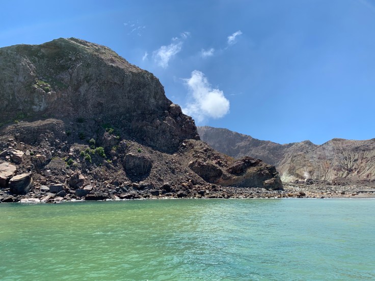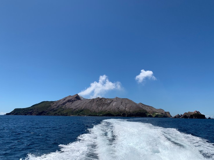 The Skipper was so nice. He wasn’t angry or frustrated or acting the least bit concerned about my tardiness. He asked me how my drive was, aren’t those lakes you pass on the way from Rotorua gorgeous? I apologized for being late. He didn’t want to hear it. I made it and made it safely so what else matters he told me. The whole crew was waiting for me in the little office, we would all walk down to the boat together they informed me; all the other passengers were already on and situated. All the crew were so nice. I chatted with whatever you call the Skipper’s right-hand-man as we walked over. He asked where I was from. When I told him I was from Caliornia, he offered his sympathy for the terrible fires. Why doesn’t California do more clearing so this doesn’t happen, he asked? It’s quite shocking to me how up-to-speed the world seems to be on our devastating fires. I’ve been asked about it multiple times every day I’ve been here, when people find out I’m from California.