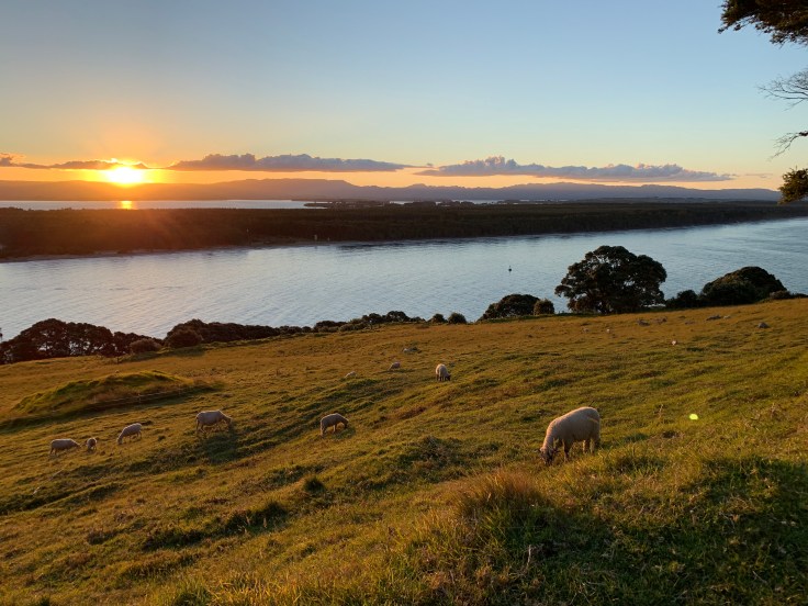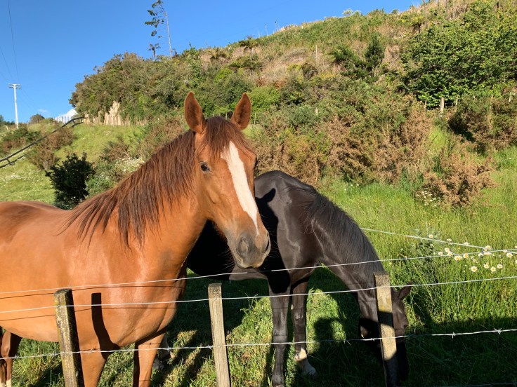 My AirBnB tonight is in Wairoa, just outside the large town of Tauranga. It is a rural farm stay cottage in the middle of the rolling farmlands. And It’s lovely. The main house is further up the driveway so it is peaceful and secluded. The whole property is secluded, trust me, I had to drive up and down the road multiples times before spotting it. The little cottage was just built in 2017 and you can tell they put attention into every detail and take great pride in it. I started walking towards the main house when I arrived to find my host and get in and before I knew it two dogs were rushing down to say hello. Yes, the best part of my AirBnB is that it comes with dogs! The host was very pleasant but very chatty. I was tired and wanted to just drop my stuff and go find something to do, not sit here and chat with her. I swear, I can figure out how to turn on all the lights I need by myself. But she did let me know the boundaries of the seven acres in case I wanted to take a stroll with Ava, my dog to access during my stay basically, and she suggested that if I did want to head into town I should definitely do the Mount Maunganui hike in Tauranga. Two other people had also suggested that hike so I knew I had to do it, and I would just barely have enough light to do it this evening if I didn’t dawdle much longer. I used to take a video tour of all my AirBnBs to send to the ex-boyfriend and this place had such great details I automatically shot a video. Since I don’t have anyone to send it to anymore y’all can see it instead! On my drive out to Mount Maunganui I stopped and hopped out of my car to say hi to the gorgeous horses at the neighbor’s farm. One was right by the gate and the other came trotting over right away. I need to get some horseback riding in soon.