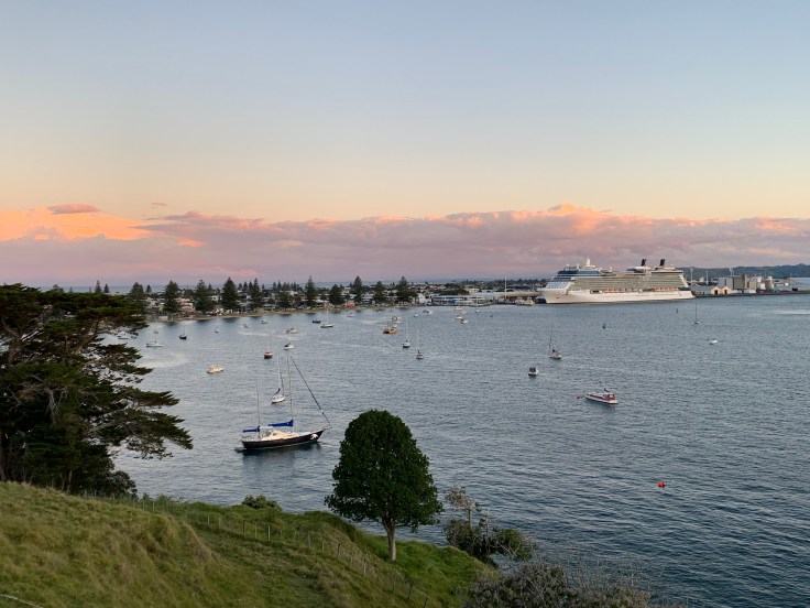 Getting to Mount Maunganui was a pain in the ass. Normally I would not be excited about climbing a mountain in the middle of a city this big but it had been so highly recommended to me. But I was not feeling it on the drive there, the town was bustling, a cruise ship was in port, this was the busiest city feel I’ve been in this entire trip. Getting there was bad enough and then parking, ugh. I really wanted to give up on it but reminded myself that rarely do I regret actually doing something that I do want to give up on. I finally found the base of the trail, tried to figure out the cryptic signage, and started hoofing it. I had to time this just right to be back down before dark and have time to get to the grocery store to get food for dinner before it closed at 9pm. I thought about eating in this town but it was too bustling and trendy, not the kind of place where I’d feel comfortable going anywhere in the lightweight hiking gear I’d just changed into.