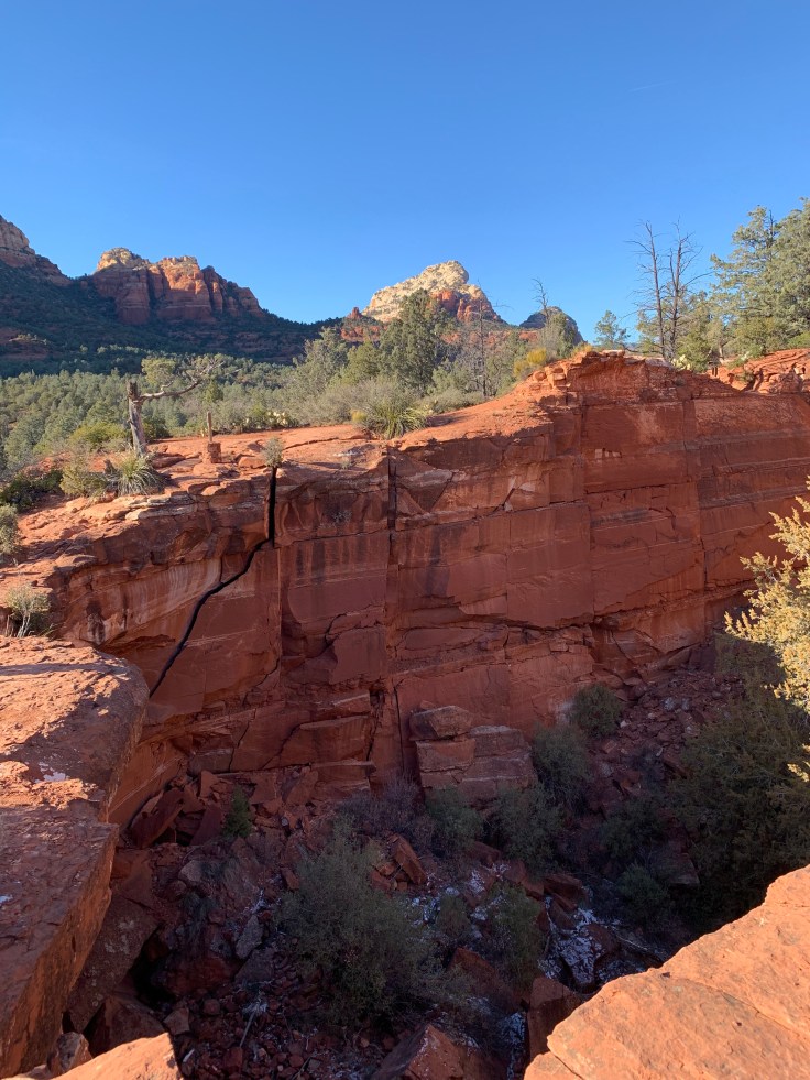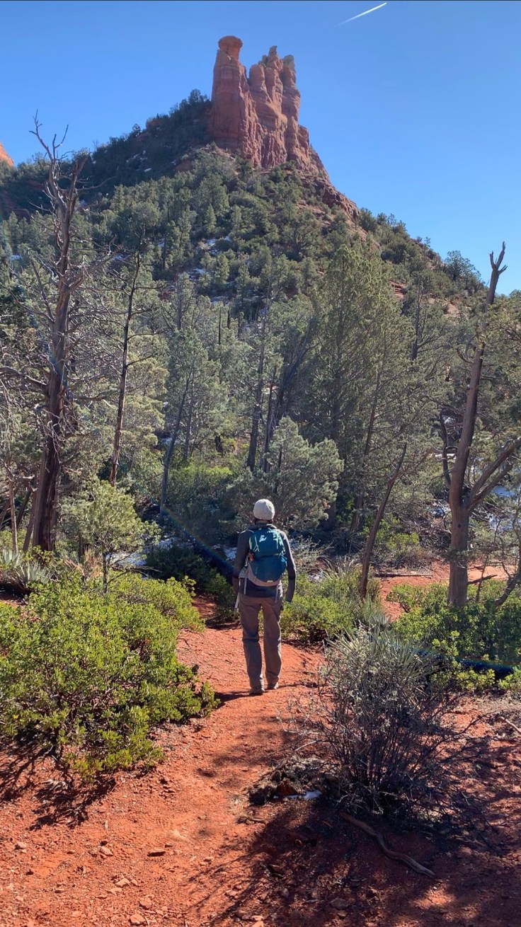 We got out at a decent time without rushing this morning and made it to our first planned trail about 10am. Our plan for the day included the Soldiers Pass to Brins Mesa loop, the Cathedral Rock hike/climb, and then the Chakra Sound Healing session with the woman we met at dinner our first night here. The chakra session was at 5:30pm so we had a set end time for the hiking we needed to keep in mind. We did some mini research on the Soldiers Pass/Brins Mesa trail before we headed out this morning and read about caves that could be found by veering off the trail onto an unmarked side trail. The directions to find this unmarked side trek seemed pretty solid so we screenshotted them and added that to our itinerary. The Soldiers Pass trailhead parking lot holds a whopping 14 cars and there is no street parking legal immediately surrounding so we parked about half a mile away and got started what we thought would be about a 5.5 mile loop.