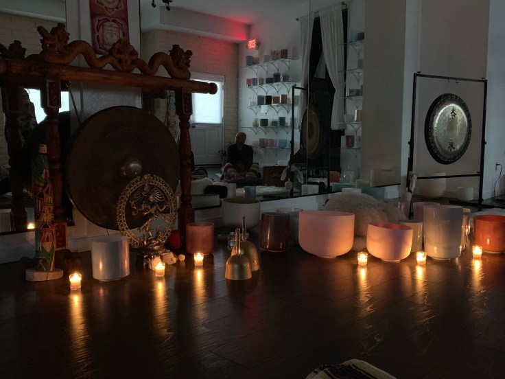 The Reiki master went from person to person providing additional healing with her energy. It was palpable. Energy is an amazing thing and allowing ourselves to actually distinguish and feel the energies arounds us feels so primal to me. Between the reiki, the spiritual guidance of the yogi, and the amazing vibrations of each of the unique sound bowls there were times when my brain felt like it was turning into a scrambled, jumbled mush. And then it would start to untwist and I would feel a peace over my body. At the onset, the Yogi had instructed us to tense up our bodies as tight as we could and then fully release with a breath out. It felt like that’s what my mind was doing. The final exercise was a color meditation where she led us through meditating on the color pink for pink is a symbol of forgiveness and compassion, which the world needs more of. She then led us through a Sanskrit recitation that translated to, “May all beings everywhere be happy and free.”