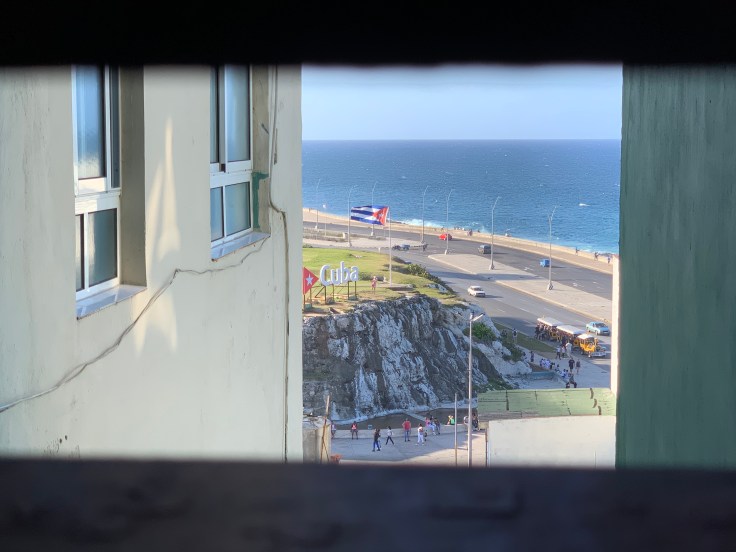 We slid into the back of Julio’s black 1951 Chrysler de Soto and headed to Vedado, our home in La Habana. We arranged for Julio to drive us to our beach house in Santa Fe the next day. As we drove we both just kinda stared out the car window. We were really here. I didn’t really know what to expect and directionally I was all turned around. We drove past the infamous Revolution Square and I recognized the mural buildings that you see in all the typical Cuba pictures. I saw the sea and the Malecon coming into view ahead of us and I knew we were almost there. To our home for the week on Humboldt (should out to California counties!). Julio stopped and seemed confused, he couldn’t find the building, #255. I started looking around and he declared that no problem, he had our AirBnB hosts phone number and he would just call her. It took me a minute to realize how weird that was. I felt paranoid but didn’t want to say anything to Brandon lest I make him feel paranoid too; I knew he was already so uncomfortable and so far out his comfort zone. What was so weird? We had never told Julio, or even Yamil, who our AirBnB host was, we had simply provided them the address. I still don’t know how he knew, and I am still weirded out by it.