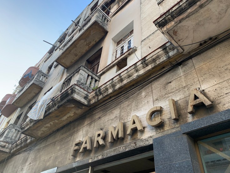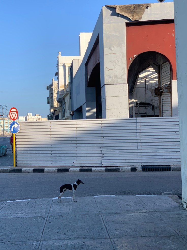 We unpacked and situated ourselves in our little home. I was a bit dazed by the reality that we were actually here. What now? We knew what we wanted to do in the evening but hadn’t planned anything for when we first arrived. We decided that first things first, go find more bottled water. With trepidation, we walked to the corner and turned down the Malecon. We found the gas station Gladita referred us to for mas agua. Not a single bottle of water in the place. Not a single beverage at all actually. Just a few toiletries, basic condiments, and a bunch of crackers/biscuits. Ok, let’s try the shop that was in the other direction. We passed a little niche that was selling just beverages. I was too busy watching our surroundings and trying to figure out where the other store was, and ask watching a dog hanging out on the sidewalk, but Brandon paid attention and insisted on buying a bottle from the guy. We were also gauging how screwed over we would be getting on prices. We found the other store. Nope, no water there either. Hmm. We took our bottle back to the apartment and picked up our little local map I had printed out and decided to set off to explore Vedado.