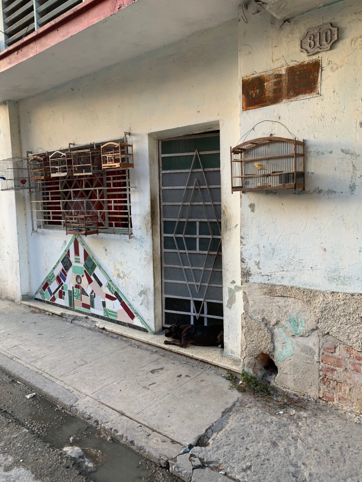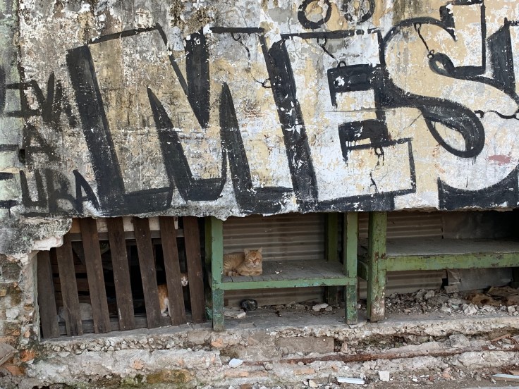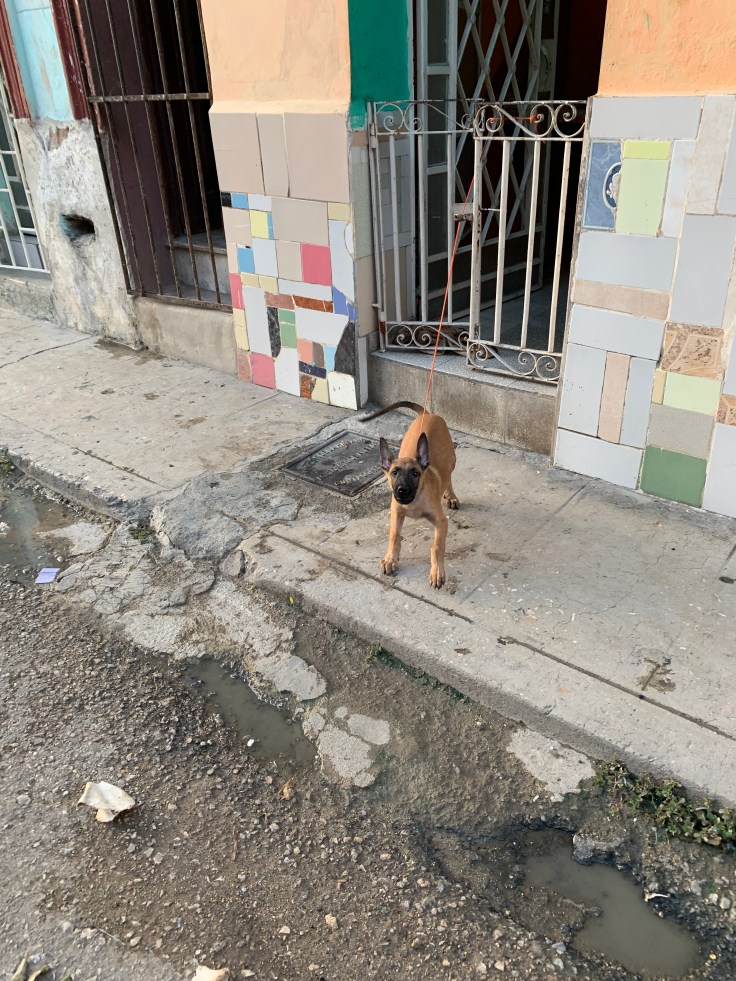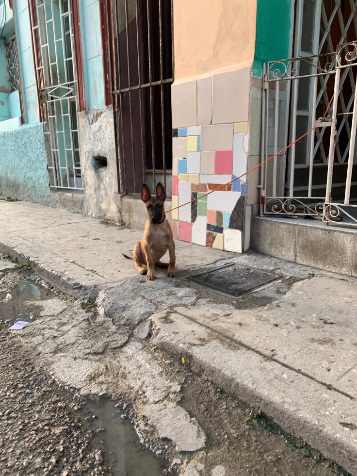 Walking along we were perplexed that we hadn’t seen a single police officer. We had heard from Julio, and in our research, that there were police everywhere. But there were none to be found. We found the “art community” as it was positioned on the map and confusion set in as to what the hell that actually meant. Since really, it was just a crumbing Cuban neighborhood. We passed homes with the doors wide open so we could see right in their dim spaces, dogs roamed around the streets, and cats lounged around. The cutest puppy was tethered to one door. As we approached, cooing over how cute he was, he tried to convince us that he wasn’t cute, he was a tough guard puppy. Grr. One man was actually salvaging good bricks off the side of the crumbling building. Can you imagine that? Literally trying to chip away bricks from another building because you were so desperately in need. I wanted to take his picture but felt that would be disrespectful. Elsewhere, men were making their own screwdrivers. As we wondered along the dirty, dank, trash lined streets I looked over at Brandon, hoping he was still glad he came on this journey with me and wasn’t like “what the hell am I doing here?” He assured me he was good. But now we needed food. We wondered around, trying to figure out what was government, what was private, where should we eat?!