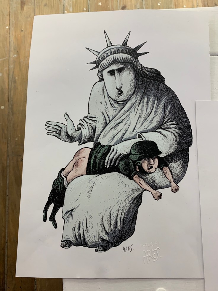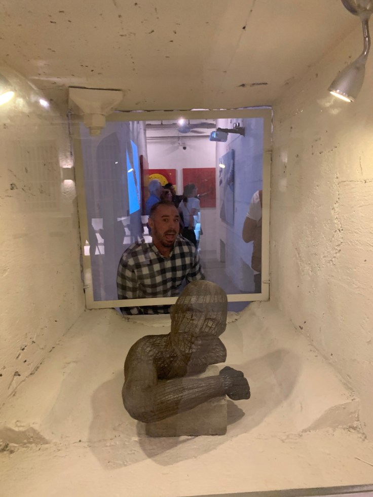 We had been warned in all of our research to expect long lines to get in to the Fabrica de Arts but there were no lines at all. We paid the $2 entrance fee and stepped up to the first bar to grab a cocktail. At the Fabrica they give each person a card on which all your expenses are written, you must turn in your card and pay the total upon exit. We wondered around taking in the art and exploring the Fabrica. One room had a stage set for live music, another had a giant dance floor and a movie screen playing music videos, another had a stage and live theater being performed. This wasn’t just an art exhibit, this was a club. Some of the art was pretty creepy, including a portrait of a possessed-looking doll setting up for tea along the Malecon. There was also an entire exhibit of dead superhero/character renditions.