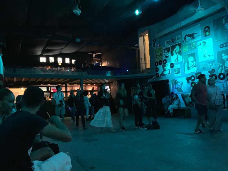 Finally with happy bellies, it was time to return to the apartment and clean up for our evening outing. We would spend the evening at the Fabrica de Arts Cubano. An old factory transformed into a co-op art exhibit with different rooms displaying local art and entertainment throughout. Within the Fabrica there were multiple rooms with stages and multiple restaurants and bars.