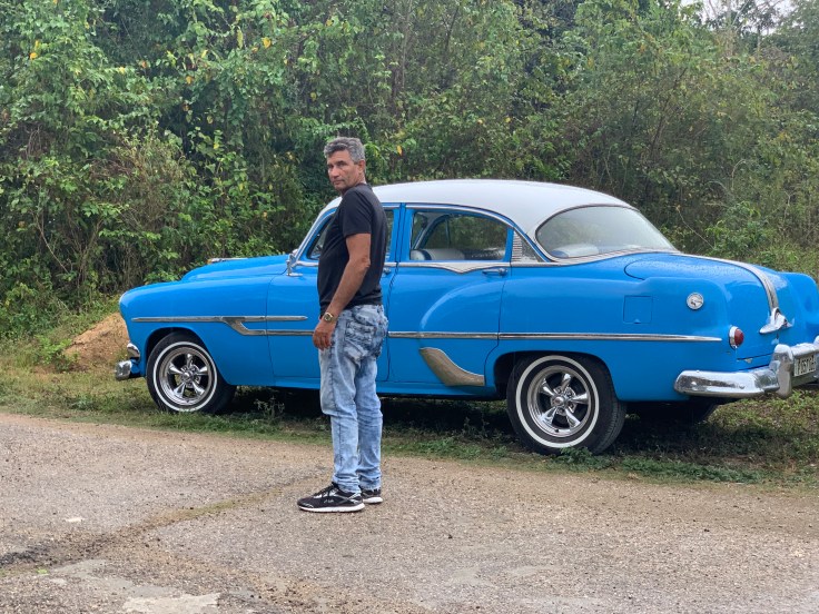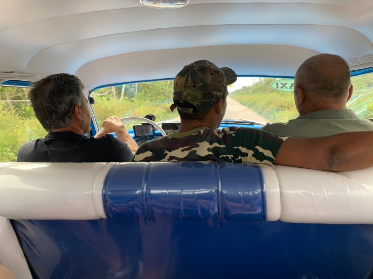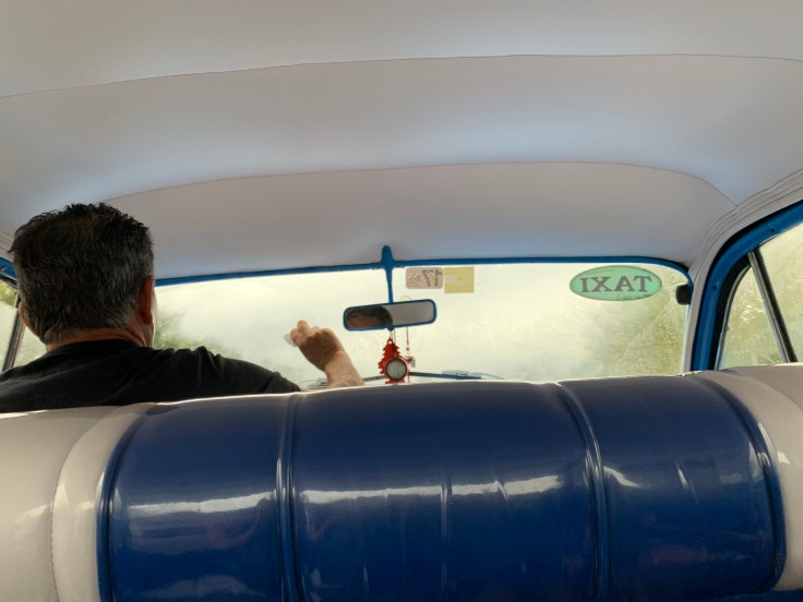 Thankfully nothing else happened, except for the alarm rudely sounding at 6:45am to get our butts in gear. Neither of us wanted to get up, both absolutely exhausted and desperate for more sleep after the stressful sounds of last night. But we finally peeled ourselves out of bed for we needed to get ourselves ready and prepare our day packs for this experience. Our driver would be picking us at 7:30am. Our morning moved slow. And Brandon was sick. The pain he started to feel last night has officially settled in and he was officially sick this morning. I felt terrible and wondered what would have made him sick but not me since we have literally eaten the exact same as each other since we got here. We were running late. I hoped our driver was patient but also had a mild fantasy of finding that the driver had given up on us and left so we could just go back to sleep. In the end, we were 20 minutes late but we made it out the door to find our driver patiently waiting for us in his blue and white 50’s Pontiac. Luis seemed nice but didn’t speak a lick of English.