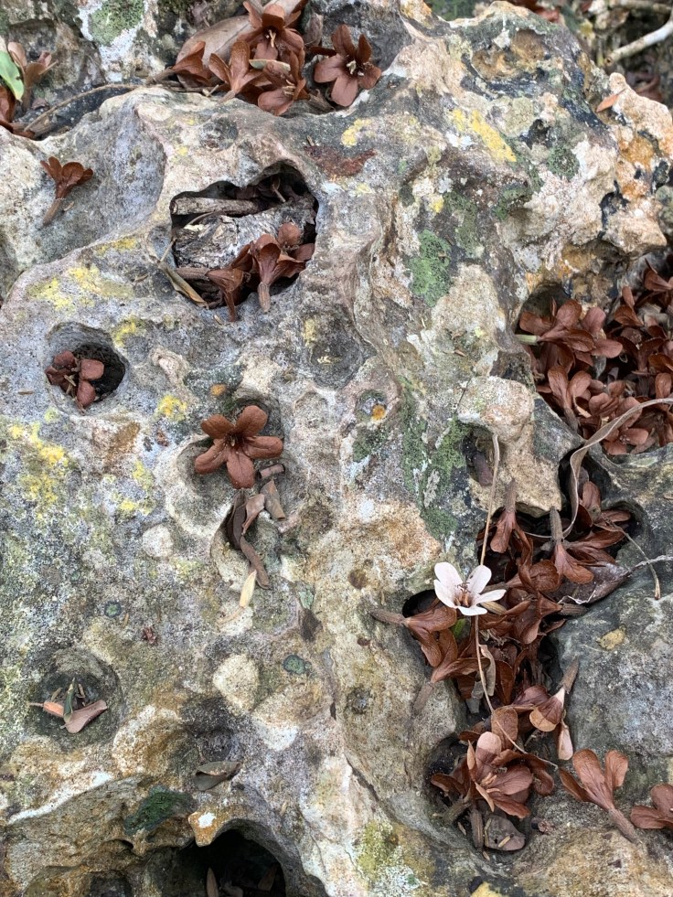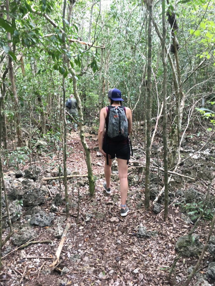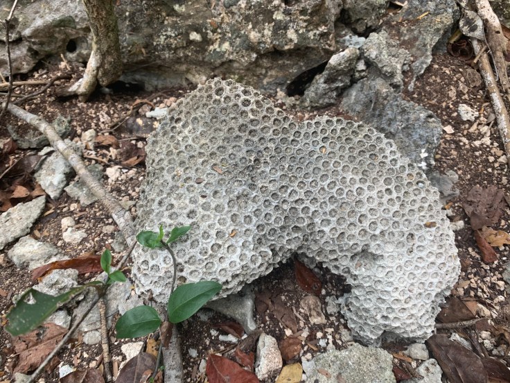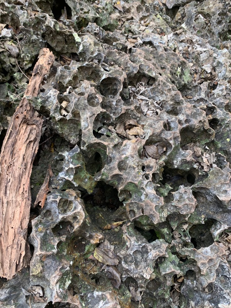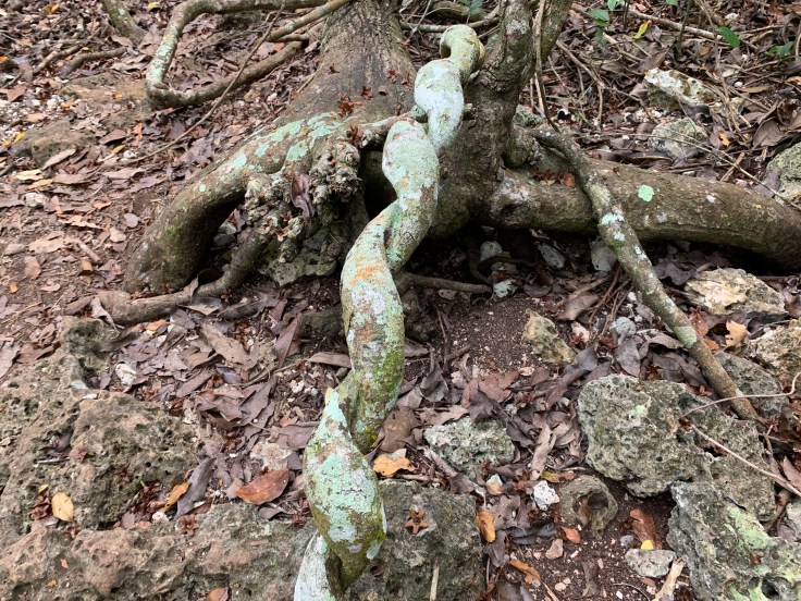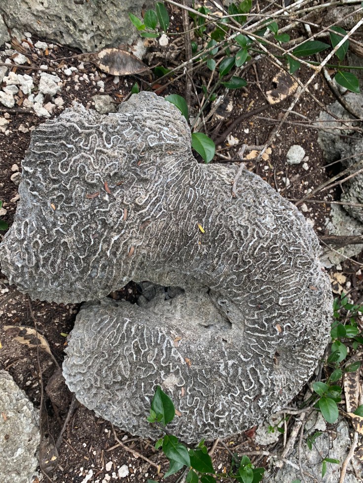 With my pride bruised, we set off down a path with Eduardo and Tomas leading the way and immediately pointing to rocks with the fossilized imprints of corals on them. We turned off the path and went from walking on packed dirt to walking on coral. The swamp was once all under the ocean. The coral was very cool and I have never hiked on anything like it before but it definitely gave my lack of depth perception a spin and actually made me a little dizzy for a few moments as literally every step required you to be mindful so as to not twist your ankle in a hole, break your toe on a piece sticking up, or fall into a deep crevice. Hiking on it was a trip. The description of the hike hadn’t included any of these details and simply said it was flat ground so I figured my Allbirds shoes would be fine. In reality, there’s no way I would have wanted to packed them for just this but I really wished I had my hiking shoes.
