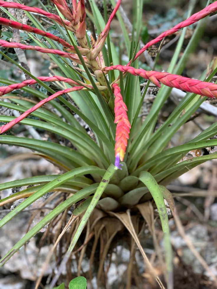 The hike was fascinating with unique flowers and birds entertaining us. Did you know that a bromeliad only blossoms once in it’s lifetime, at age 5, and then dies? I didn’t. At times the ground was covered with beautiful little brown flowers. Throughout our hike we spotted owls, hummingbirds, parrots, and trogons (the national bird of Cuba). Tomas and Eduardo told us that just about a month ago on this same hike they had come across a giant 4 meter long python. Oh hell no. I became a little more vigilant the rest of the hike. We had been out there close to three hours and we were getting hungry and hot. I was doing ok with the heat but Brandon had it worse from going in the sauna-like cave earlier. He was anxious to get to the flooded cave that they had promised us made for a great swimming hole. We followed our guides chit chatting and enjoying the fresh air.