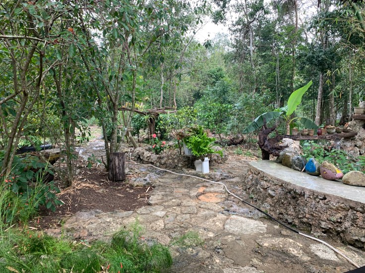 Pulling up to Eduardo’s son’s home it was unlike any other home we had passed on the way, two stories and in much nicer shape. We were greeted by his wife, again, name unknown, who also didn’t really speak English but we could communicate enough for her to guide us where to find the bathroom and where to wash our hands. Their property was beautiful and peaceful. Our meal was being prepared in a little outdoor kitchen and we would eat on a picnic table beneath a shelter. We were able to muster up enough broken communication to ask if we could explore the yard while she finished preparing our meal.