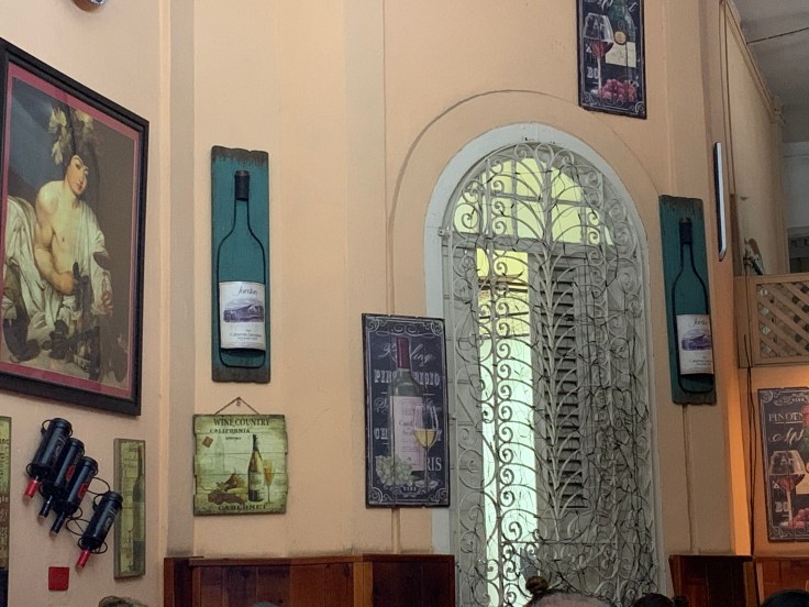 We showered, warmed up, and put on warmer clothes to go find some dinner, ending up at a quaint little restaurant that Brandon recalled seeing in his research, it may have been been one we saw on the Anthony Bourdain special, we will need to investigate. The walls were decorated with a wine theme including a Sonoma County plaque and large replicas of Jordan wine bottles! We decided on a few plates to order – salad, risotto, and honey lime chicken – but ended up changing the risotto order to ropa vieja when told that it would take 45 minutes to make the risotto. Oooooh, this meant it would be done right and fresh! But we didn’t want to wait. We were tucked away at a table in the corner of the restaurant, peacefully recalling our day, when another couple was sat at the table across from us. The Frenchman pulled out a cigarette and I started coughing. I had to excuse myself and go outside to get my breath back. We ended up having to ask to change tables to get away from the chain-smoker.