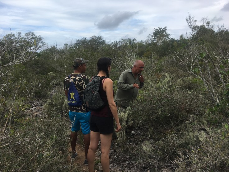 We hadn’t seen any mosquitos yet in La Habana but had read many warnings about mosquitoes as we prepared for the trip. Brandon and I had some very direct conversations about that topic as we were packing where we compromised that I would bring my natural hippie bug repellant and he would bring his poison as a back-up when mine didn’t work. We had brought both with us for the hike and needed to apply it right away as mosquitoes were obvious here. As Brandon sprayed himself all over with eau de deet, I haughtily opened my natural citronella bracelet and snapped it on. Brandon explained my attempt to naturally repel the bugs and the translator explained it to Luis and Eduardo. They all basically shook their heads and rolled their eyes. I had no allies with my hippie shit today. The bracelet fell off my wrist and the smell was quite strong anyways so I tied it on as an anklet instead.
