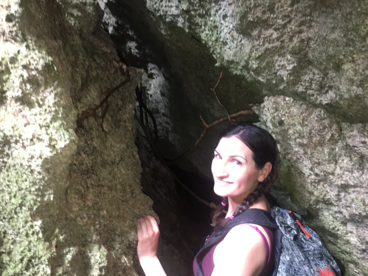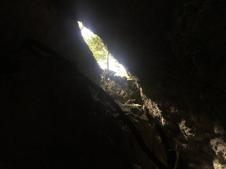 I loved being out in nature hiking, I was totally in my element. We came to a little crevice, the opening to a cave. I was still a little dizzy and found my footing uneasy as Eduardo led us down a slope into the cavern. He went in ahead of us to clear low-hanging bats (!!!) and found a large white crab. He explained to us that during these winter months the crabs live on land and then they migrate out to the sea during the summer to reproduce. We had never heard of large land-living crabs before. We saw a couple other dead crabs on the ground but this was the only live one to be seen in the cave. This crab was not happy to be handled and his claws flailed. It was time to go deeper into the cave. Eduardo set the crab down and Tomas explained that it was going to get very tight, we would be crawling. Hold up, yo! We explained that I’m claustrophobic and already having a really hard time with my depth perception so maybe Tomas and I would stay behind and Brandon would go explore with Eduardo. We wished we had the other pack with us as a headlamp was in there. All of a sudden Eduardo and Tomas both grew very excited, yelling to me to move quick! I looked down and jumped screaming. That pissed off crab was out for blood and hurling himself at my ankles with claws snapping. How I did not totally fall or hit my head and hurt myself in that moment is a mystery. That little bugger tried to kill me. In hindsight, we are suspect that the crab was “planted” in the cave to be found on our hike. As we reflected it seemed too easy that he just happened to find the only one in there so quickly upon our arrival…