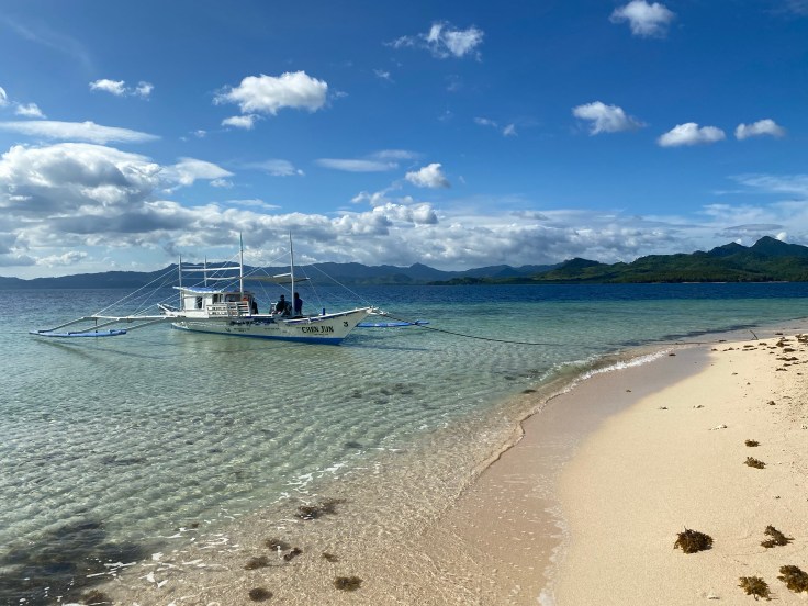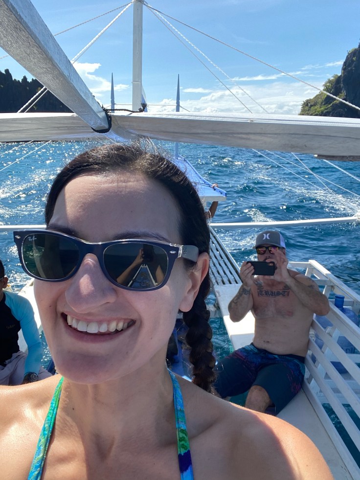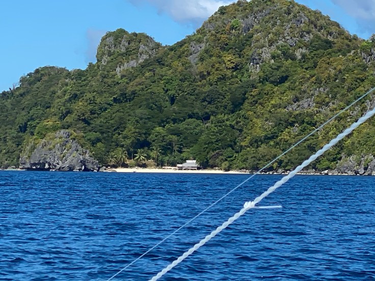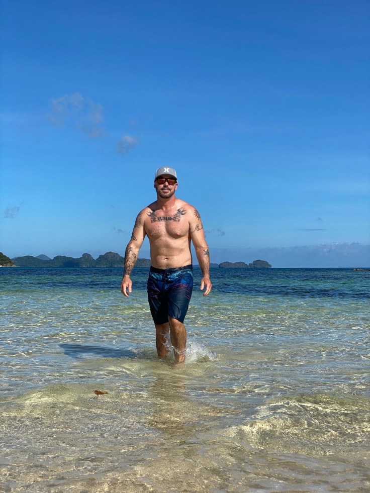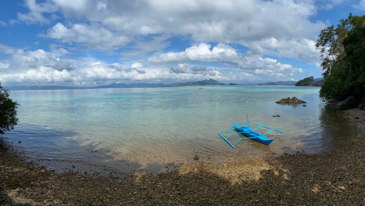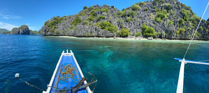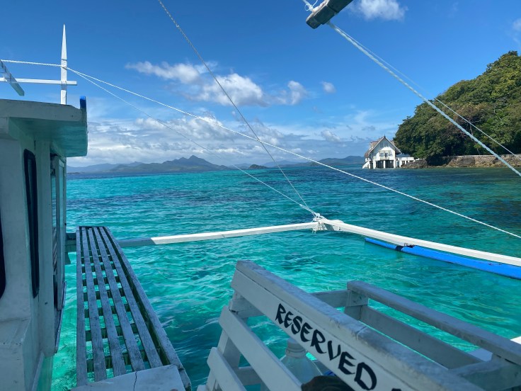 And so was our security guard. Apparently a security guard is part of the deal. I’m still unsure what we are missing that has security being such a priority., But at least they are very non-intrusive. It did feel a little overkill though having four staff on the boat just for us two including – in addition to our security – a guide and two crew members. Another boat was there taking outgoing guests back to Taytay and I was disappointed to see 9-0 getting on. Now we’ll never know his story! Who is 9-0? He’s some random dude who was here ALONE. Now I am all for traveling alone, we know that, but this is not the kind of place you come by yourself. We noticed him by himself at dinner last night. It struck both Brandon and I as odd and we wanted to know his story. My theory was that maybe his partner or friend (whomever he came with) was sick in the room or they had gotten into a fight. Brandon’s theories were much better; maybe this was supposed to be his honeymoon and he was left at the altar but it was already paid for. Or maybe he is pulling some 90 Day Fiancé shit and came here to find a cute little Filipino wife. Hence, our nickname for him, 9-0. We saw him alone again at breakfast this morning which made me toss out my theories and jump on the Brandon theory train. But now we’ll never know.