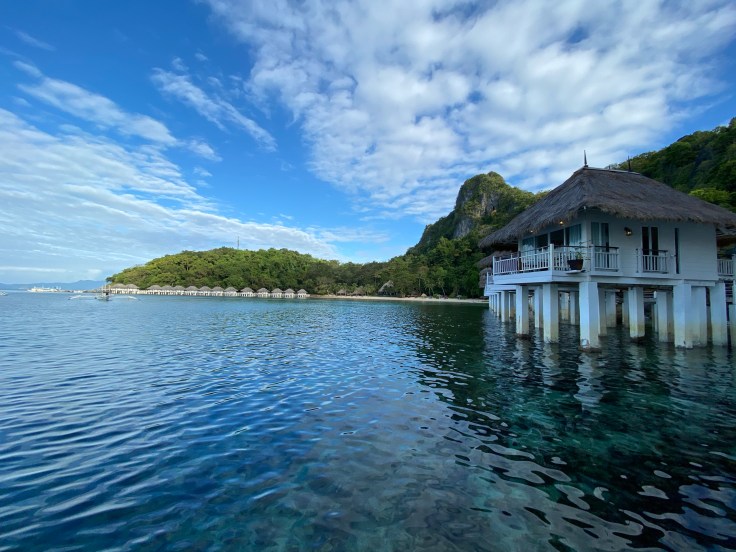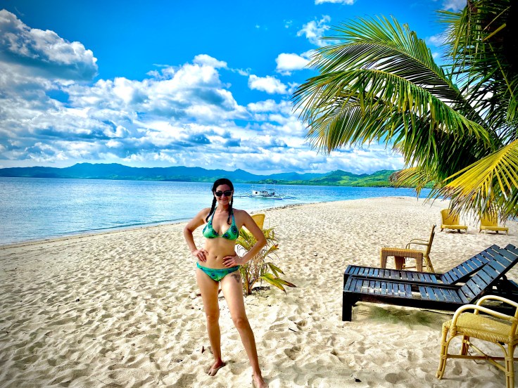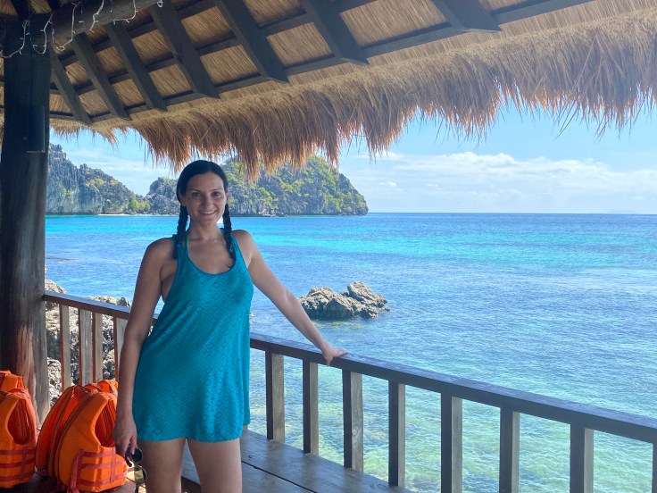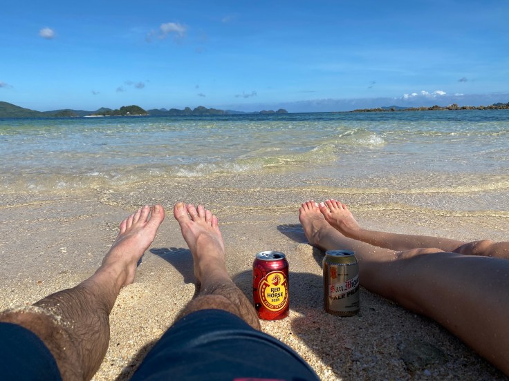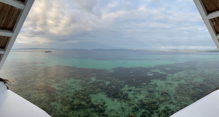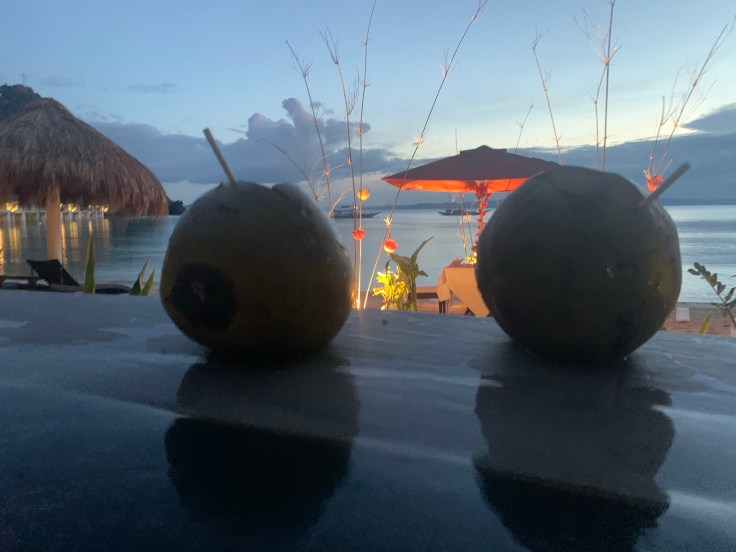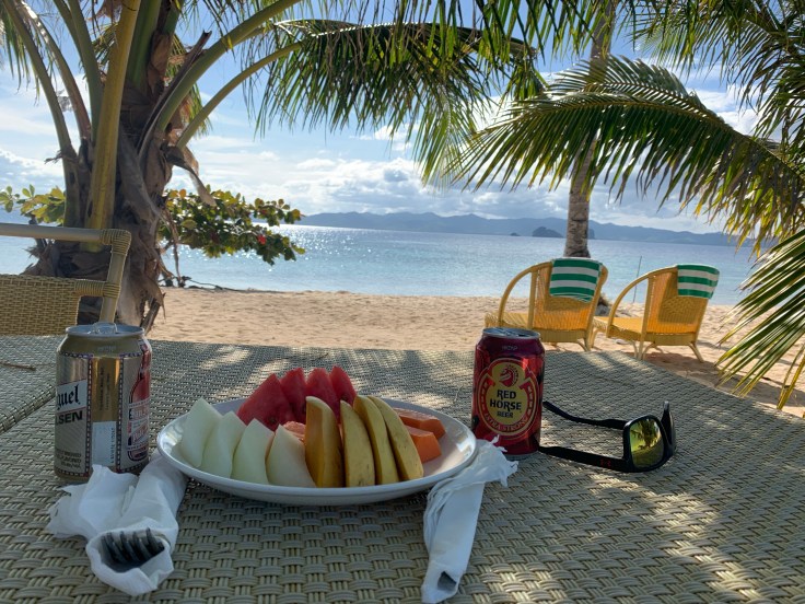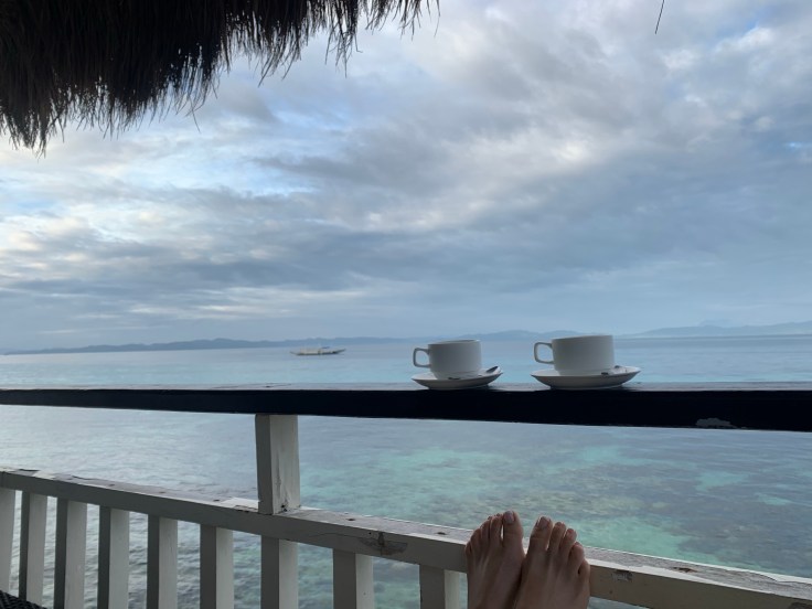 And so was our security guard. Apparently a security guard is part of the deal. I’m still unsure what we are missing that has security being such a priority., But at least they are very non-intrusive. It did feel a little overkill though having four staff on the boat just for us two including – in addition to our security – a guide and two crew members. Another boat was there taking outgoing guests back to Taytay and I was disappointed to see 9-0 getting on. Now we’ll never know his story! Who is 9-0? He’s some random dude who was here ALONE. Now I am all for traveling alone, we know that, but this is not the kind of place you come by yourself. We noticed him by himself at dinner last night. It struck both Brandon and I as odd and we wanted to know his story. My theory was that maybe his partner or friend (whomever he came with) was sick in the room or they had gotten into a fight. Brandon’s theories were much better; maybe this was supposed to be his honeymoon and he was left at the altar but it was already paid for. Or maybe he is pulling some 90 Day Fiancé shit and came here to find a cute little Filipino wife. Hence, our nickname for him, 9-0. We saw him alone again at breakfast this morning which made me toss out my theories and jump on the Brandon theory train. But now we’ll never know.