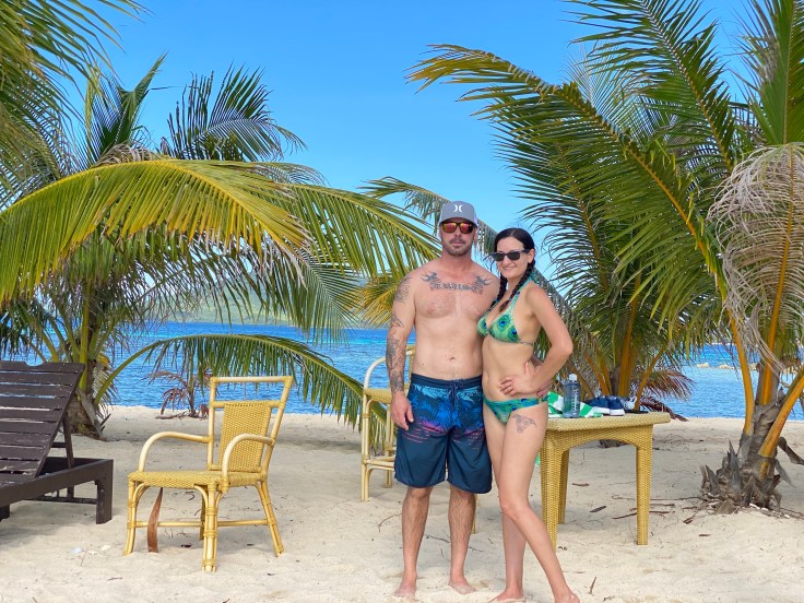 The boat whisked away to our first stop, Nabat Island. But we didn’t actually get to to go on the beautiful beaches we could see. This was just a snorkeling stop. Now, here’s the thing, I am extremely claustrophobic. I have never successfully snorkeled before. I’ve tried. Probably half a dozen times I’ve tried. But I’ve never done more than put a mask on (the WORST) and hold my breath for ten seconds while I looked in the water. I’ve never actually breathed through a snorkel and having my nose covered is hell to me. I’m also not a good swimmer, I can barely swim at all! But here we were, an activity that was strictly snorkeling. I felt very melancholy that I couldn’t enjoy this activity with my fish of a man. The guide joined us in the water and attached a buoy to himself for me to hold onto as we went along due to my horrible swimming skills. I really hated the idea of disappointing Brandon by not enjoying the activity and so I tried. I put the damn mask on my face, let it cover my nose, held my breath, and plunged my head in the water. Yes, held my breath, I wasn’t ready to get crazy and actually try to breathe yet. And I ended up with a stinging nose full of saltwater. I shot my head up and Brandon and the guide, Raul, both turned their attention on me. I’m not going to lie, I was in a bit of a panic. My anxiety was off the charts and the trauma of having my nose covered and then having it sting with sea water was overwhelming. “I’m good, I’m good, I’m just going to float along,” I insisted. Brandon tried to help me put the mask back on and tighten it properly and I about lost my shit, feeling like I was suffocating. Inside I was in full panic mode. I convinced him and Raul to just let me float along and recover. And they obliged.