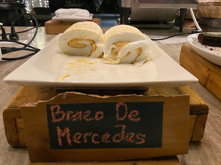 Dinner was decent, though not exciting. Except for one of the deserts. I’m not sure what exactly Brazo de Mercedes is but it tasted like a delightfully delicious marshmallow meringue custardy goodness. I must figure out to recreate this deliciousness at home! We stopped by the bar for a game of pool after dinner, not my strong suit. But thanks to Brandon sinking the 8-ball out of order I won! I wanted to play more but the evenings seem even hotter and stickier so we opted to head in to the air conditioned comfort of our cottage instead. We actually really enjoyed being up at the crack of dawn so we could fit so much into one day and plan to be up early again tomorrow. After breakfast we will go for the hike, kayak around the island, get massages, and then who knows what!