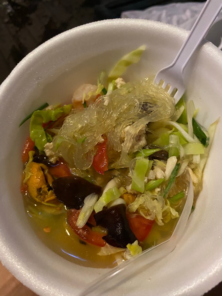 There was no place near the street vendors to eat our food so we decided a picnic by our resort pool was in order. And holy smokes. Our street food meal was out of this world. The chicken was moist and tender, perfectly seasoned, and easy to nibble off of the stick. The real start of the show, however, was the seafood noodle bowl. It may be my favorite thing I’ve eaten this trip. It was stingy on the protein but contained perfect vegetables and noodles in a divinely fragrant lemongrass broth. I must eat her food again tomorrow. Hell, I would go grab another bowl right this very moment if I could.