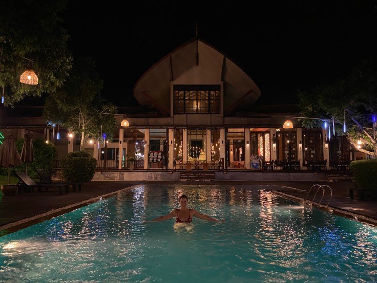 We had the pool to ourselves, the resort seems to be pretty low occupancy right now, and the atmosphere was sweet and romantic. Decorated for Christmas, a scene of lights lit one side and icicle lights with giant ornaments hung from the trees. The water in the pool felt cold at first but a dip after dinner did wonders to cool down my hot and sticky skin. This was the peace and relaxation we are ready for.