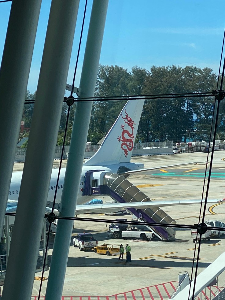 The Phuket airport was impressively efficient. Except for the minor detail that none of the currency exchange counters had USD and it took us three counters to exchange back the equivalent of only $100 USD. Check-in, security, passport control – all a breeze. We were cleared through and at the gate in no time. Today we would be flying to Taiwan, booked through Cathay Pacific. The first leg of our flight was from Phuket to Hong Kong on Cathay Dragon.