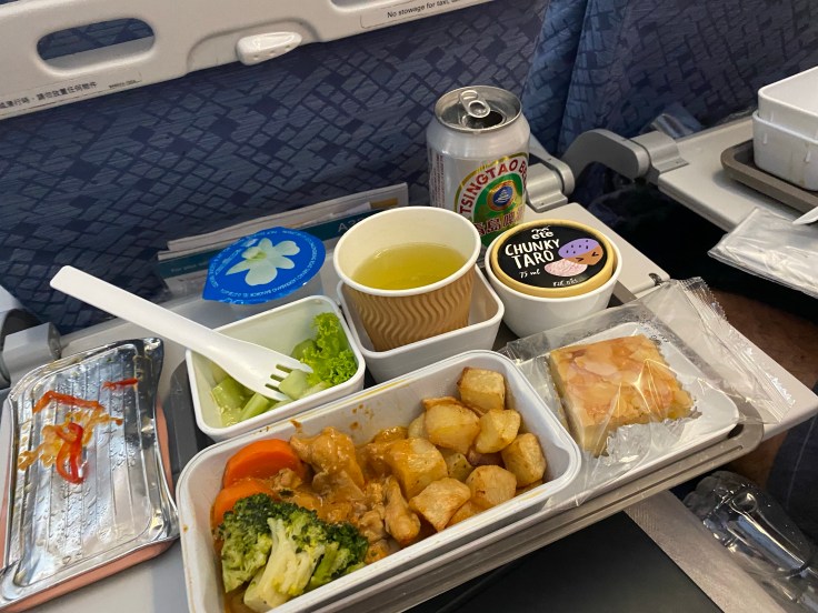 Stepping onto the plane was an unexpectedly sensory excitement as beautifully scented air was being piped in; you could actually see the puffs of perfumed air wafting through the cabin. It was delightful. They served a meal of chicken and potatoes with a chunky taro ice cream for dessert. The food was eh, edible but not great. The “ice cream” was confusing as the first two ingredients were sugar and vegetable fat. It tasted good but I didn’t eat it as I have a rule to try to avoid anything where I know sugar is high on the list. And I cannot wait to escape sugar. Neither of us can. It is astounding how much sugar is incorporated and how sweet food is in these countries. At home, we eat very clean and I can pretty much guarantee we have both ingested more sugar in the last two weeks than cumulatively in the previous two years. And we can tell. We both feel like we’ve packed on a few pounds this trip and are craving a return to clean eating.