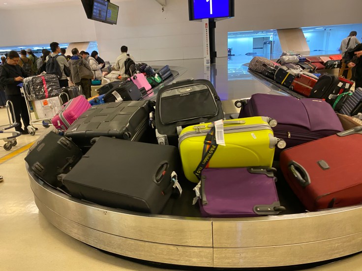 Taipei is a major hub and the airport was congested. Getting thru passport control and getting our bags took the longest of any of our flights so far this trip. As we stood in line for passport control, I talked about hiking trips I wanted to plan for next year (Norway or Spain or ???). Brandon stared at me, “You’re like a German shorthair pointer that you just can’t wear out.” I’ll take that as a compliment! Baggage claim is a mess in Taipei. While some luggage carousels stood empty, others (like the one our bags were coming out on) had four or five flights worth of bags coming off at once and kept stacking and piling higher and higher.