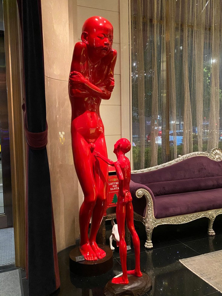Éclat Hotel Taipei is a little boutique hotel now on the Hyatt network. Checking in, we learned that we could have rented a mini fish tank to have in our room for the night! I can’t lie; I was tempted. Bronze sculptures decorate the lobby and hallways; most of which include penises. The room was tiny but high-tech. And the toilet; that was the shining star! With a full control panel, the seat was always warm, it automatically opened and flushed, and included multiple spray, bidet, deodorize, and dry options. I never knew a toilet could be so entertaining; it was amaze balls. And I’m definitely putting one like it on the list for our bathroom remodel.