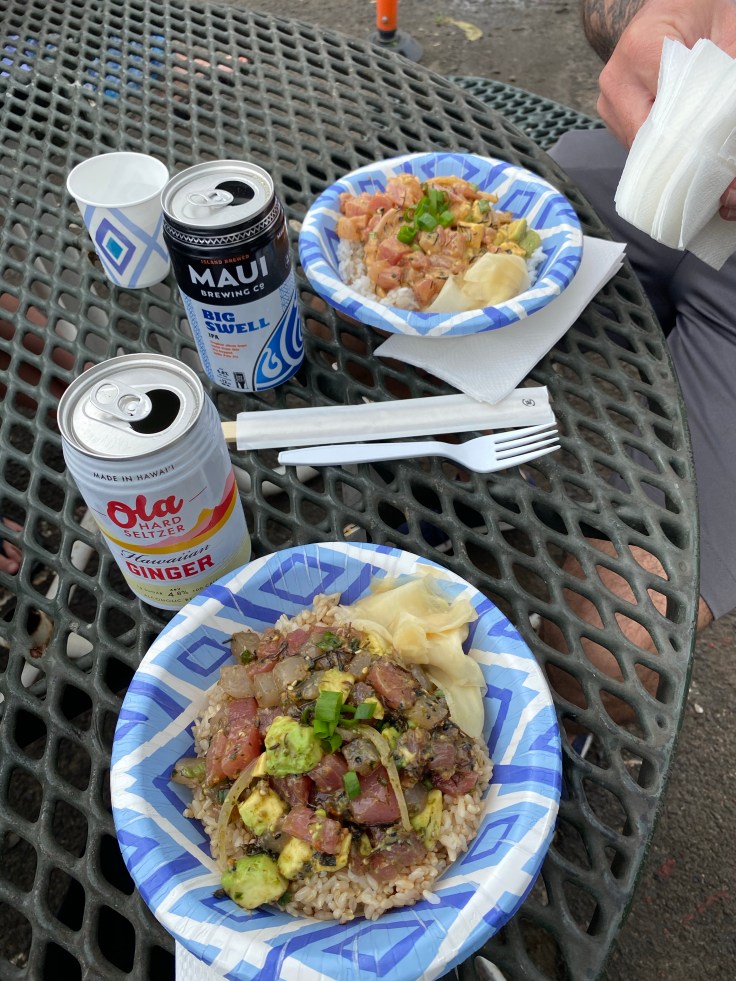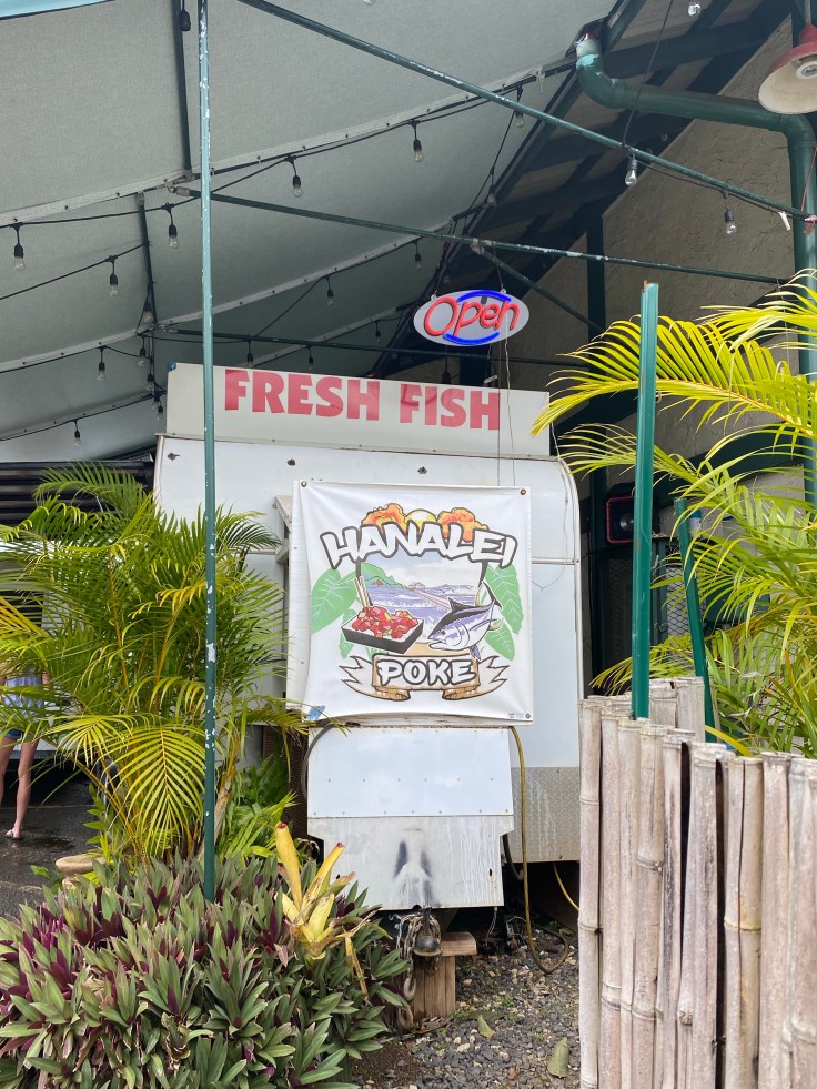Ready to really start our day, we decided to head North to Princeville and Hanalei Bay, we’d figure out what to do as we went. Hopping into our car with the top down we hit the road. And we sat in some traffic. And we could feel the wind whipping. And it started to sprinkle. Finally, the top went back up as rain drops danced off the windshield. Lunch time was approaching and I found a place that had fantastic reviews and specialized in sushi burritos. Perfect! Traffic on the narrow highway alternated between flowing fine, flowing slow, and not flowing at all when, multiple times, we found ourselves at road closures that made for a single-lane road. One such lane closure was thanks to the power company trying to gingerly remove and replace a power pole that snapped in half. I guess last night’s storm was no joke! Hungry, we finally arrived at the SushiGirl. Only the damn girl wasn’t there. A bucket of paint sat in front of the little shack with a handwritten note, “Closed for renovations. Will reopen tomorrow.” Drat! I was disappointed but had seen great reviews on another place just a block away that promised delightful ahi wraps and poke bowls. Only, when we got there we found that they had no ahi and it would be about another 45 minutes until they did. Ugh. We gave up on finding food in that part of town and continued up to Hanalei.