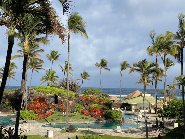 We were excited to land on Kauai, hop in our mustang convertible rental car (ok, maybe less excited that it was a mustang but excited to have a convertible), and get settled into our hotel for the next three nights, the Kauai Beach Resort. The resort looked nice online and I was pleasantly surprised that upon check-in the property was exceeding my expectations. The pool deck was large and scenic with the beach and ocean just a step away. The room was spacious and comfortable with a great view. It could use a couple cosmetic updates and the door was a struggle to push open thanks to the rusty hinges, but overall it was better than I expected to be honest.