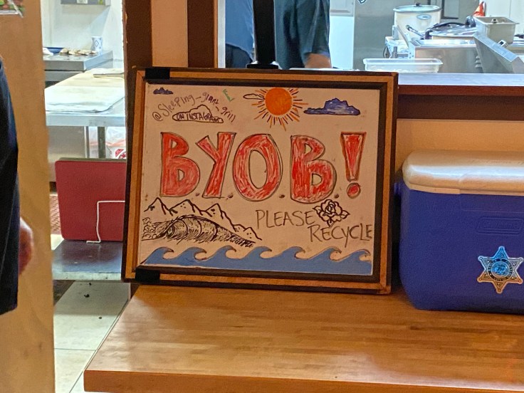 That greasy quesadilla did a number on Brandon. I ended up going to get dinner myself as he laid in the hotel room feeling sick. Such a shame too since it was the best meal by far in Kauai! After some quick googling I left to find the Sleeping Giant Grill, apparently it has been featured on a FoodNetwork “Best Thing I Ever Ate” (or something like that) episode. And wow was it spot on! The ahi wrap was out of this world, definitely one of my favorite things I’ve ever eaten. And worn… that sucker was juicy and before I knew it the foil wrapping gave out and my jacket and jeans were COVERED in a pinkish sesame dressing. I cannot wait to do some laundry when we get to the Big Island to wash them out! If you are ever on Kauai. Eat there. If we had discovered it out first night I probably would’ve wanted to go back there every day! While there I also realized that BYOB seems to be a thing here since I’d noted that at a couple different small dining establishments now.