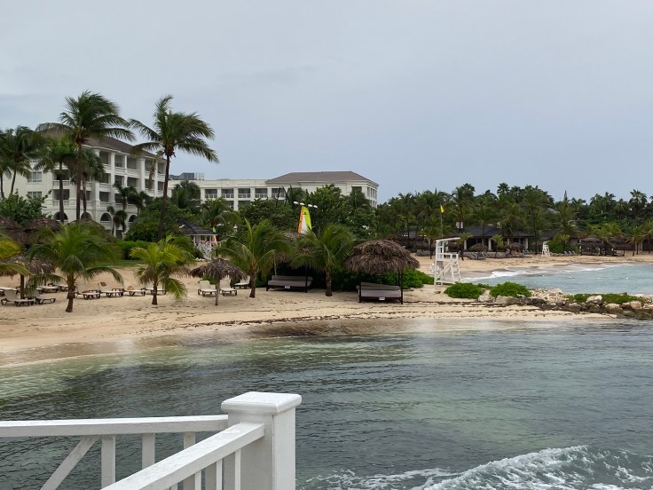 The flight to Jamaica was quick and cloudy. Lacking the normal view of deep blue Caribbean waters I would expect to see. In order to travel to Jamaica we had to complete a pre-travel authorization through the Jamaican government and have negative COVID tests within ten days of travel. Deplaning in Jamaica we found ourselves In a long hall, a literal hallway, lined up with hundreds of others as five flights apparently all came in at basically the same time. Gentlemen dressed in scrubs walked down the line, taking each person’s temperature, scribbling it on a piece of paper, and handing it to each person to present later on. Eventually, they had distance markers on the ground, but I wouldn’t call them six feet apart. Until the markers appeared, it was closer quarters than felt comfortable. After about an hour in line we were instructed to sanitize our hands and led to a table to sit down and review our health questionnaire with a nurse. Residents have to quarantine at home for 14 days and tourists must stay on the grounds of their resort for the first 14 days of their trip, unless on an authorized excursion. All business travelers were given a COVID exam.